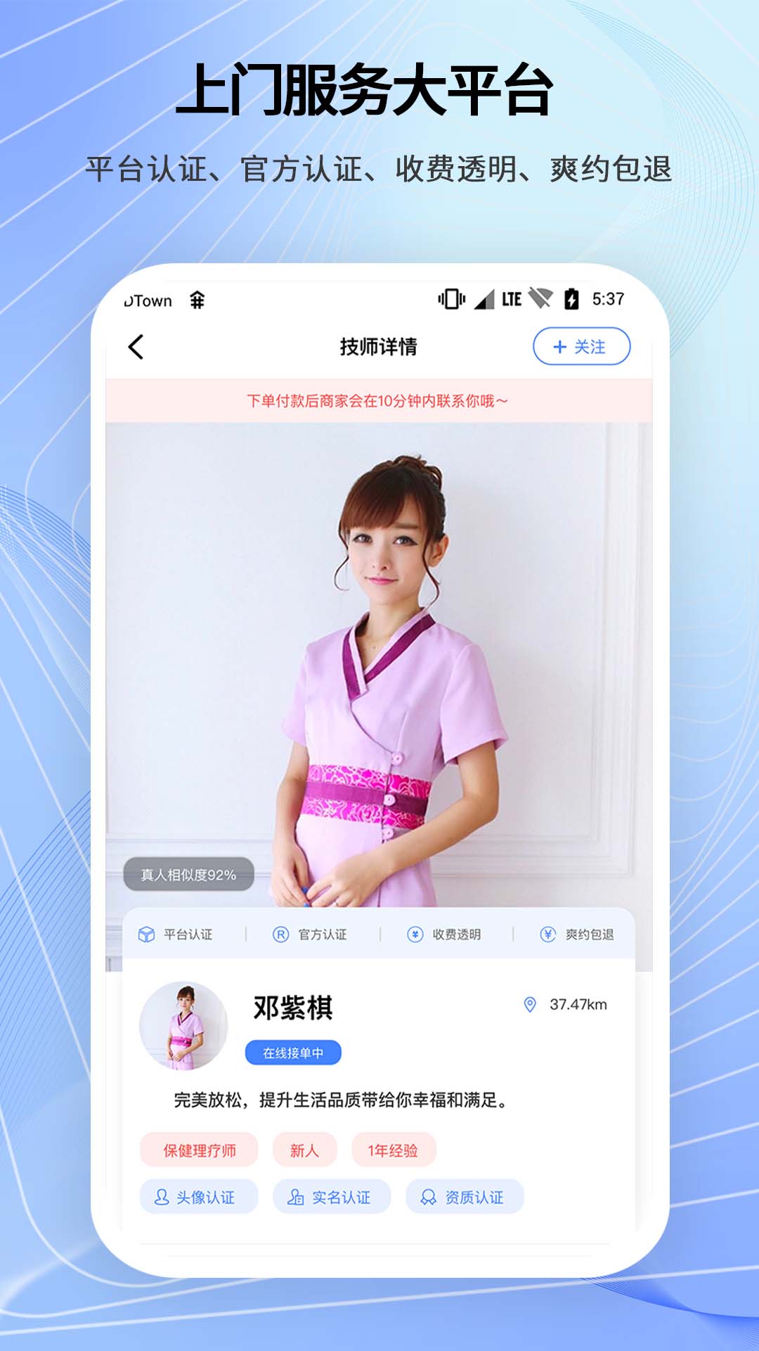 5. 认证技师:所有技师都通过实名认证,且经过真人实拍,确保服务的专业性和可靠性。