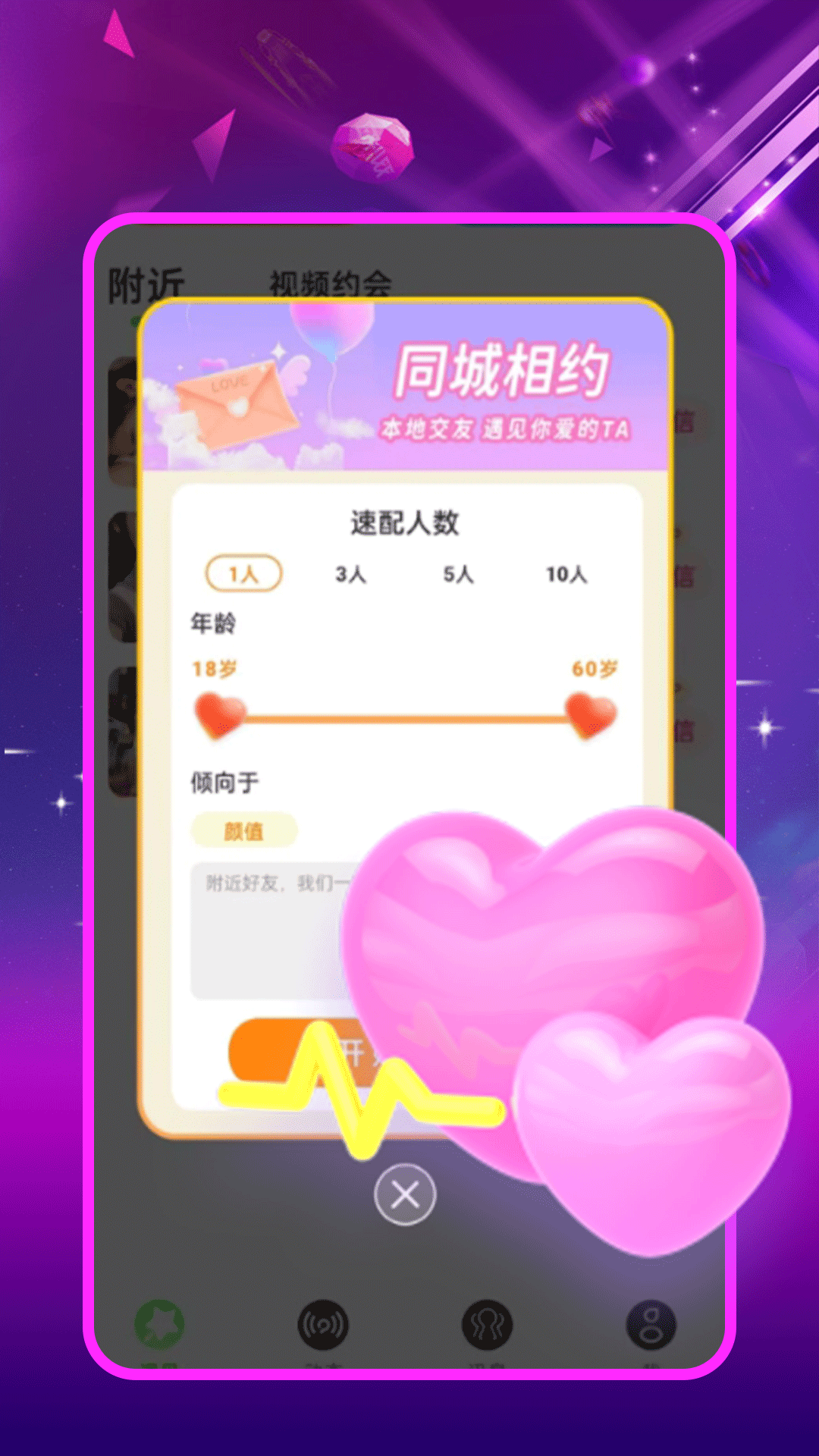 这里是单身男女的专属天地,无论是聊天还是约会,无论是同城相遇还是恋爱之旅的开启,都能在此实现。
