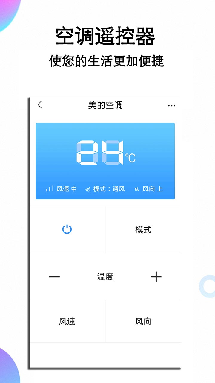 空调遥控功能独具特色:通过旋转操作一步就能调节温度,制冷制热状态清晰明了,还能实时显示室外天气状况。