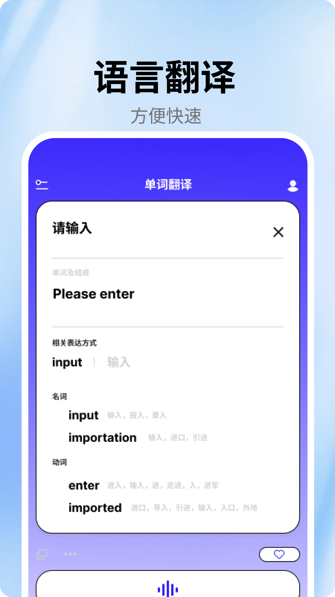 无论您是想要翻译文字,还是翻译词语,DeepL翻译都能满足您的需求。它能让您快速且轻松地把语音和文本翻译成其他语言,使翻译变得又快又容易。DeepL翻译是翻译短语、对话的得力助手,是一款非常好用的应用程序。此外,它还配备了反义词查询、笔画顺序查询等功能。