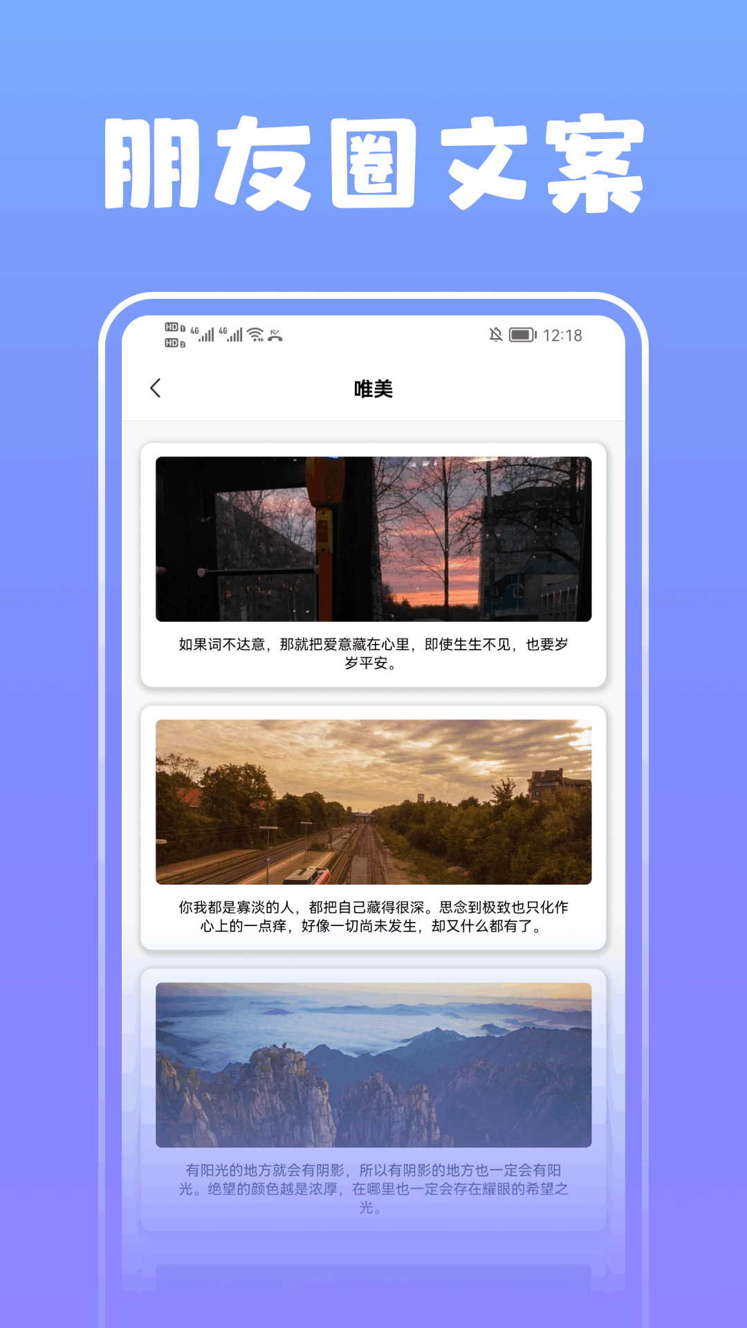 往往,一句歌词、一段对白、一句摘抄或者一句语录,这些短小精悍的语句,都是人们经验的凝练总结,最能打动人心。