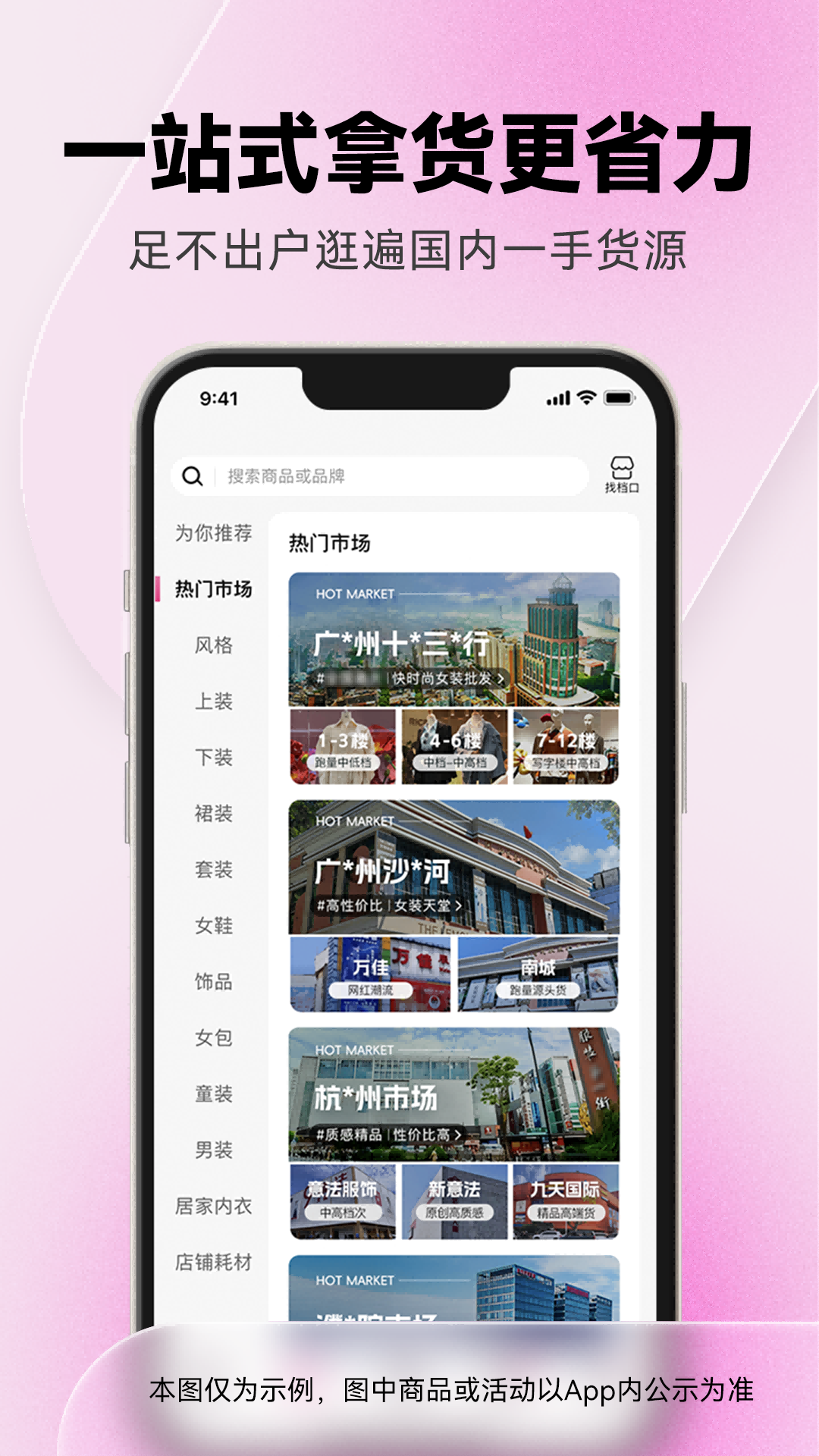 【差异货品】为了解决您所在商圈货品同质化的问题,一手平台整合各地一批市场的货源,款式极为丰富,这会让您的货品更具竞争力。