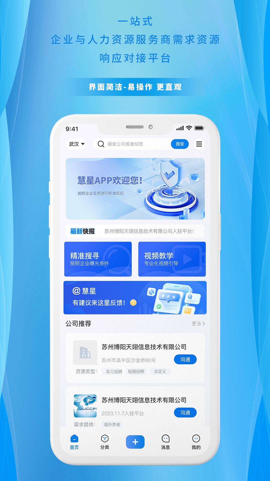 慧星APP聚焦于企业与人力资源服务领域,它是苏州博天乾源网络信息技术有限公司整合各行业需求与资源,并综合多方经验而精心打造的一款B2B互联网平台。该平台能迅速满足企业在人力资源领域的多样化需求,加快人力资源服务商的资源转化进程,是助力广大企业与人力资源服务商达成“快、精、准”对接的一站式互联网服务平台。
