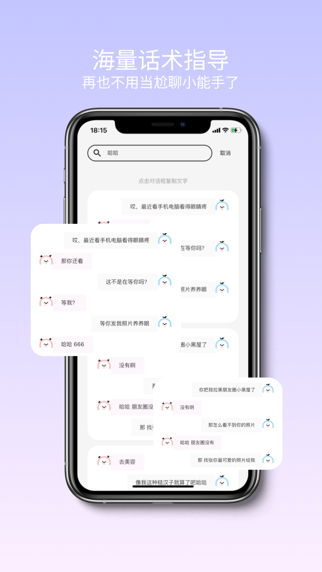 复制对方的话,一键粘贴搜索即可获得超多高情商的回复,让你不用再被调侃是“尬聊小能手”了。