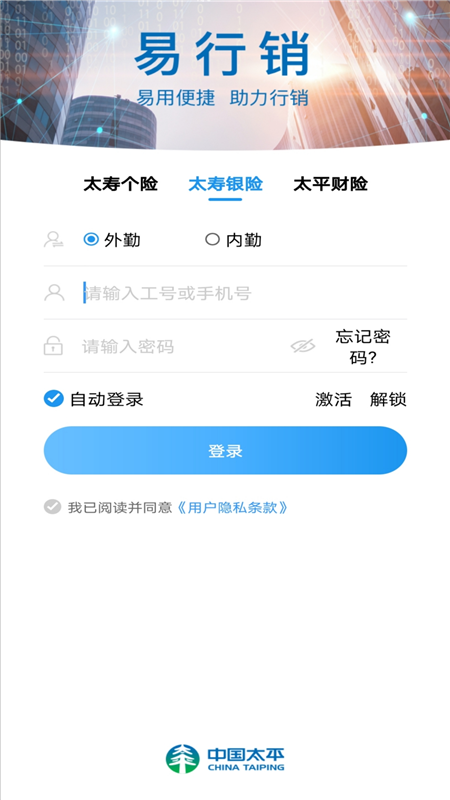 易行销对太寿个险的内外勤、银险的内外勤以及太财立保通这三个App进行了整合,最终整合成为一个统一的App。