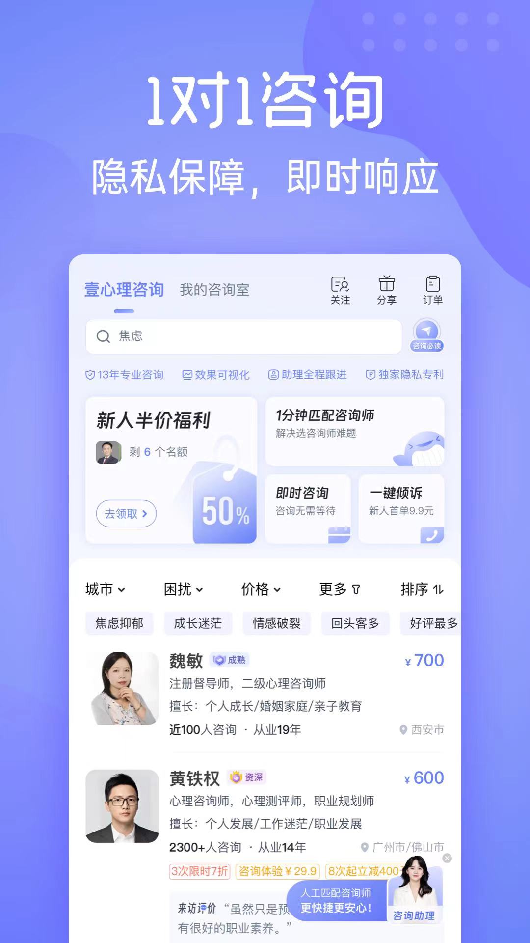 在壹心理App上,你能够: