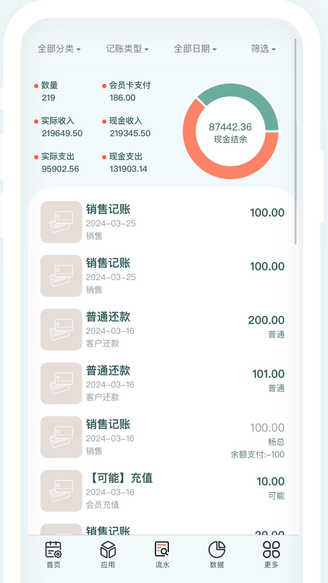 客户管理方面也毫不逊色。它包含客户充值管理功能,您在记账时能够依据客户会员卡的余额进行扣款操作;还可以查看客户流水、进行订单管理以及客户对账等。
