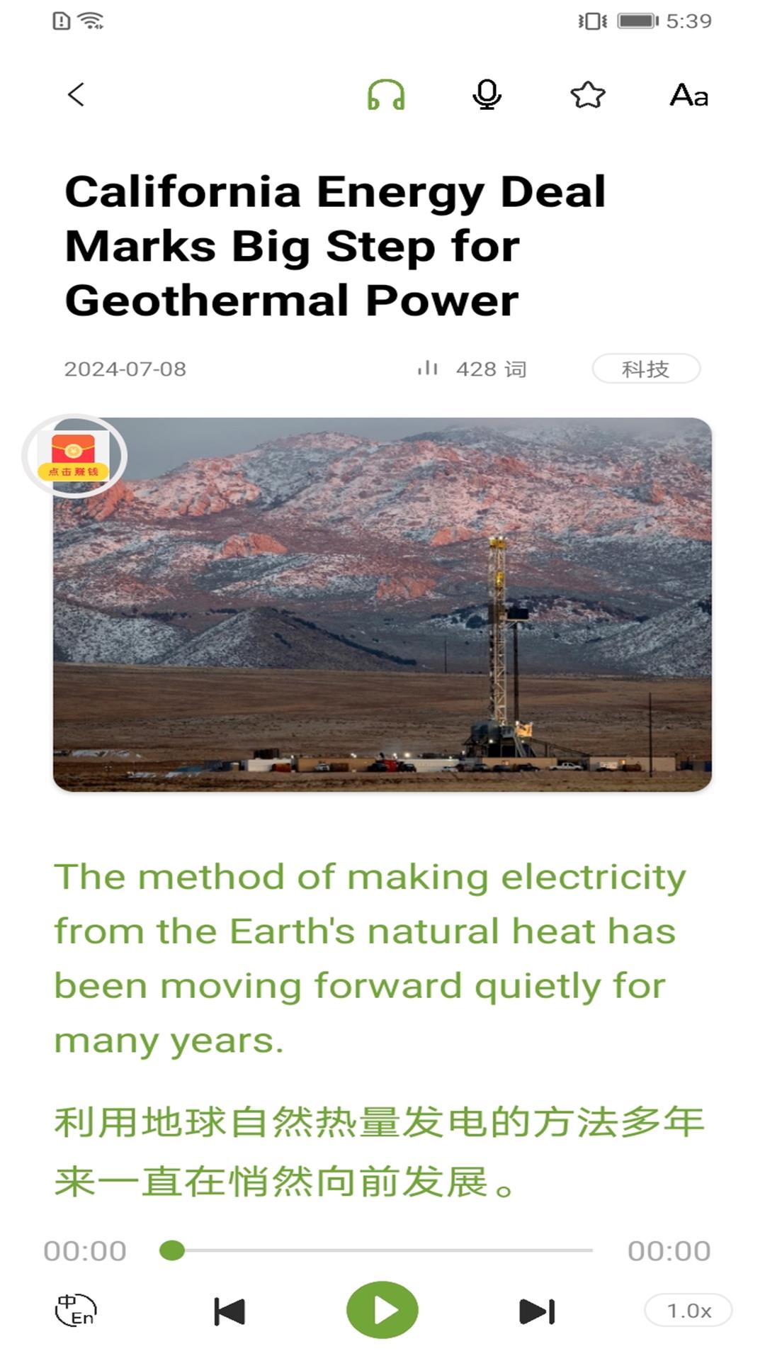 软件具备诸多强大功能,例如语音调速、显示英文、单句播放。当您遇到不认识的单词时,还能进行查词操作,也可以收藏自己喜爱的文章等。