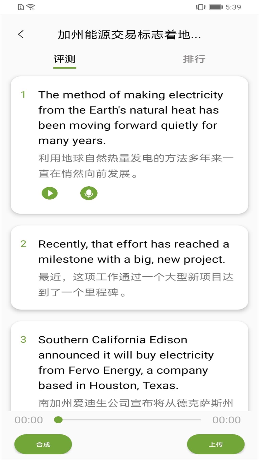 此功能借助智能语音技术,当您跟读原句发音时,它能够自动对您的发音水平进行评估,精准定位发音错误之处,还能纠正发音缺陷。