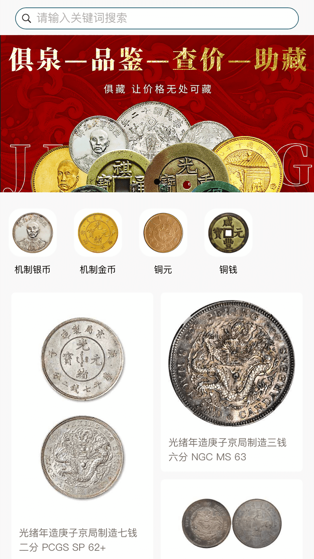 俱藏,一款古钱币行情查询助手。它每日都会更新上千条机制币、古钱币、铜钱的拍卖成交信息。在同类型的查询助手当中,俱藏的更新速度是最快的,所涵盖的内容也是最为全面、及时的。