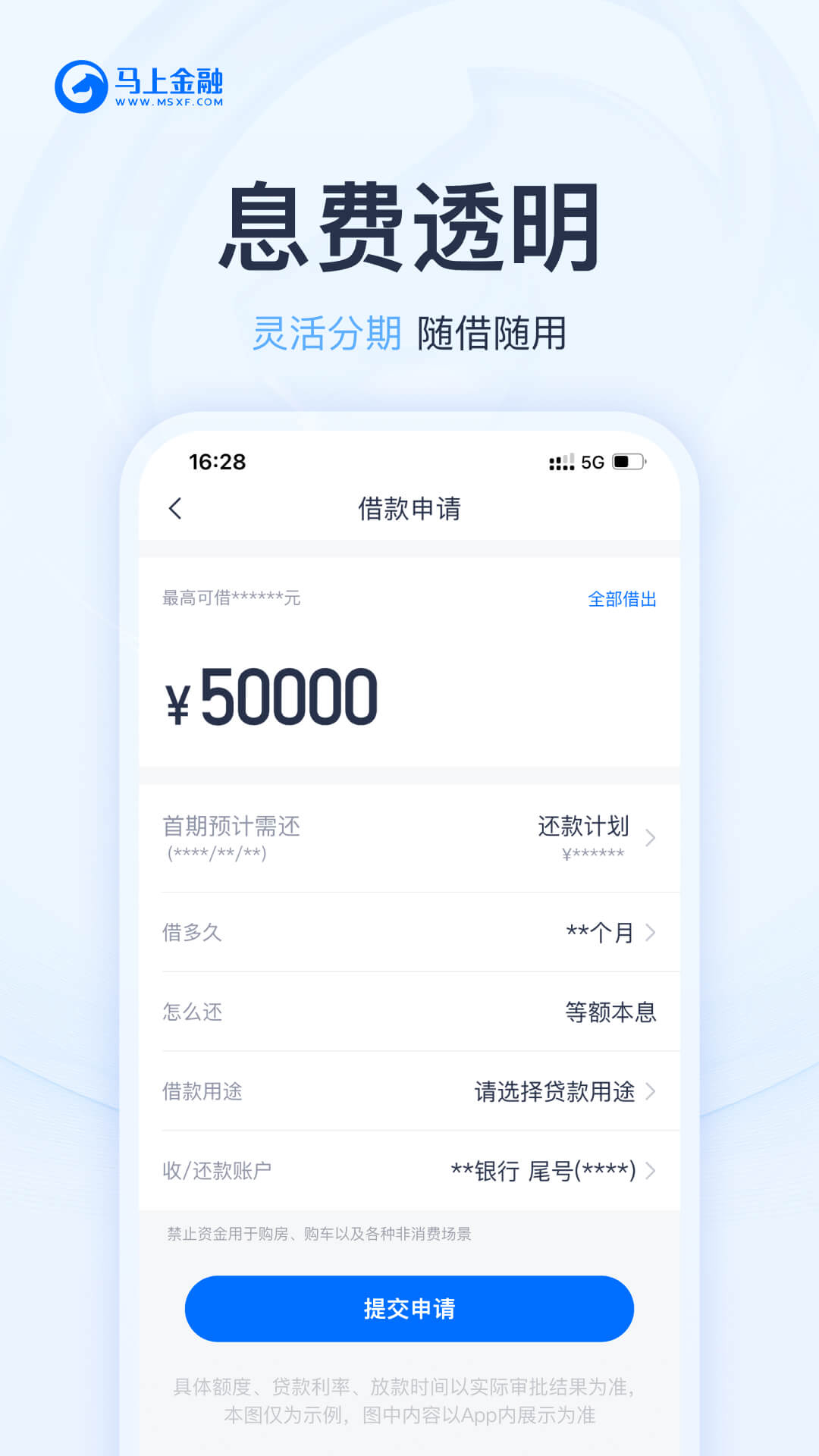 借款额度以及放款时间以实际审批结果为准。贷款存在风险,借款应谨慎,请根据个人能力合理借贷、理性消费,防止逾期情况发生。