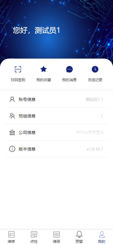 智能维保app具备实现工业设备维修保养相关功能的能力,其涵盖了维修、点检、维保、培训以及我的这五个模块。