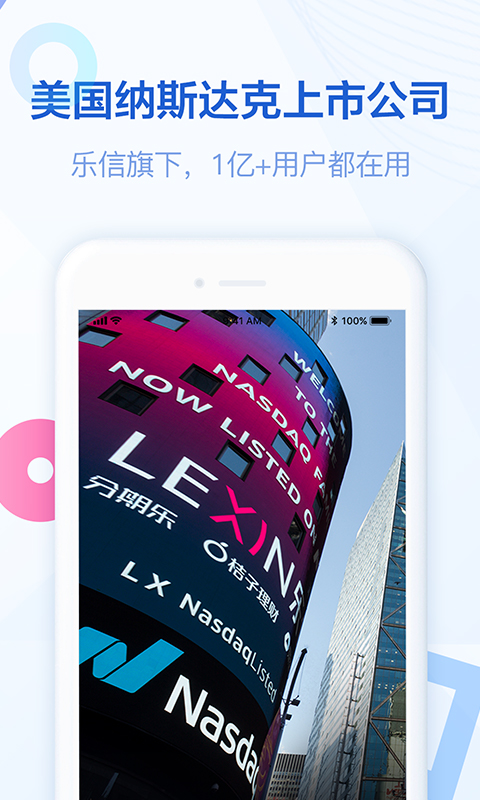 它是纳斯达克上市公司(股票代码:LX)旗下的分期借贷金融平台,并且是百行征信首批接入机构。其贷款资金由正规持牌金融机构提供,通过运用AI技术和大数据风控技术,为用户提供安全可靠的服务,是一个受到超1亿用户信赖的手机借钱平台。