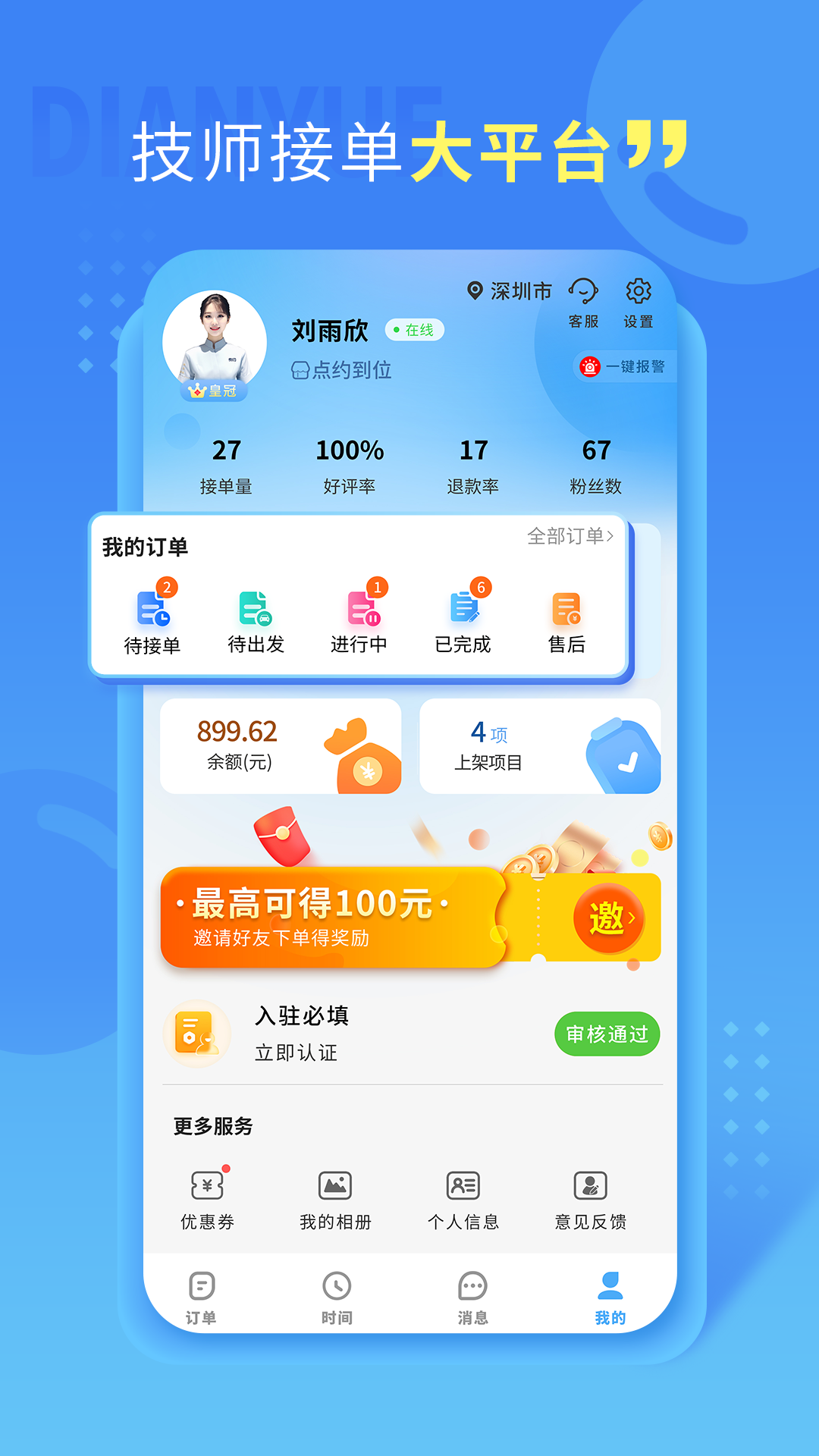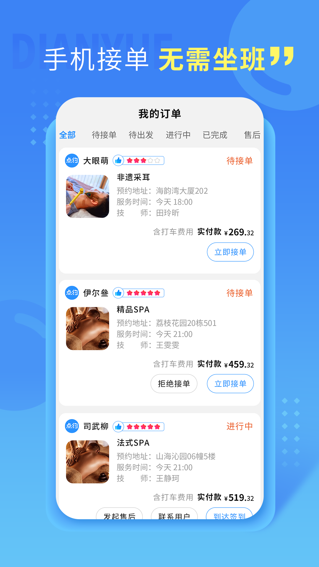 - 零成本入驻:技师入驻平台不需要缴纳任何费用。