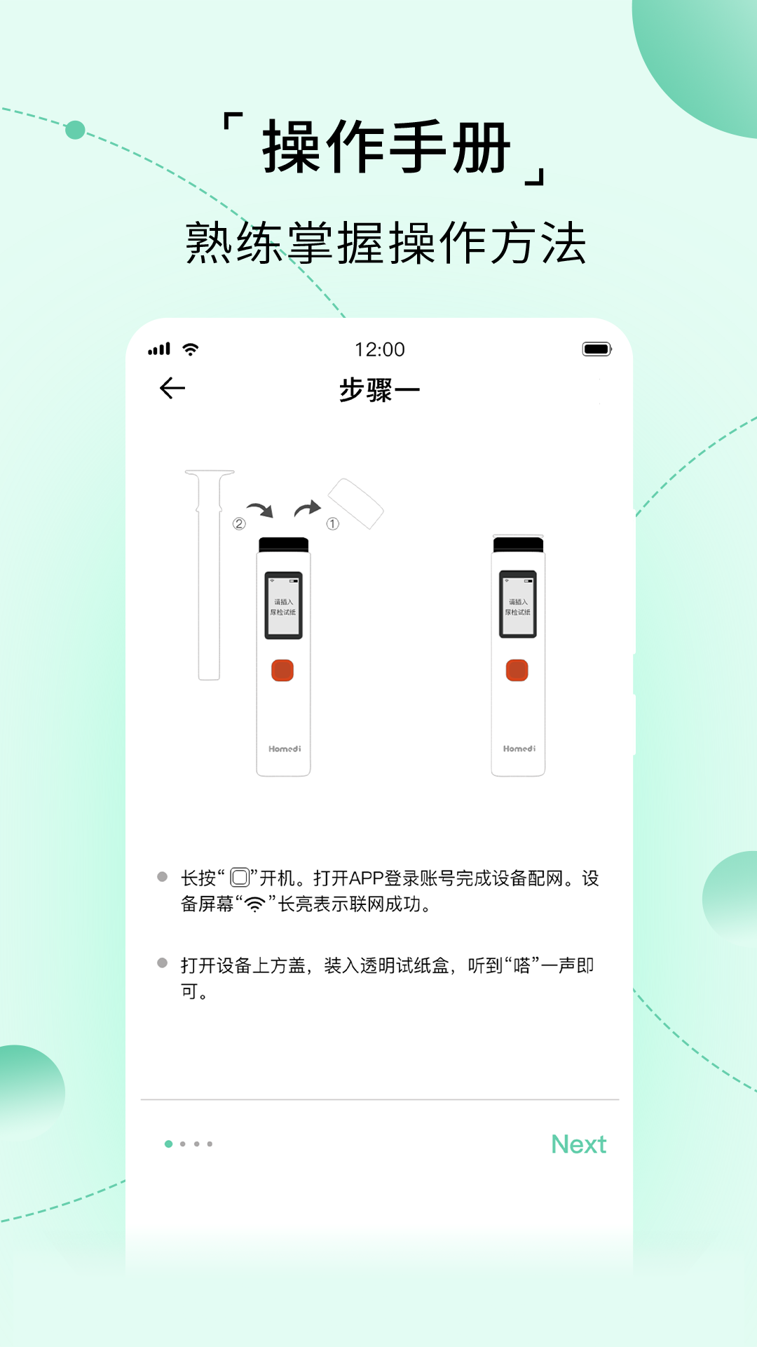 家家诊借助自主研发的尿液检测设备,让用户能在家轻松快捷地进行健康自诊。其检测设备具有诸多优势:检测结果精准,已通过NMPA认证;使用起来简单便捷;用户可以随时查看检测的历史记录以及健康趋势,时刻为您的健康提供保障!