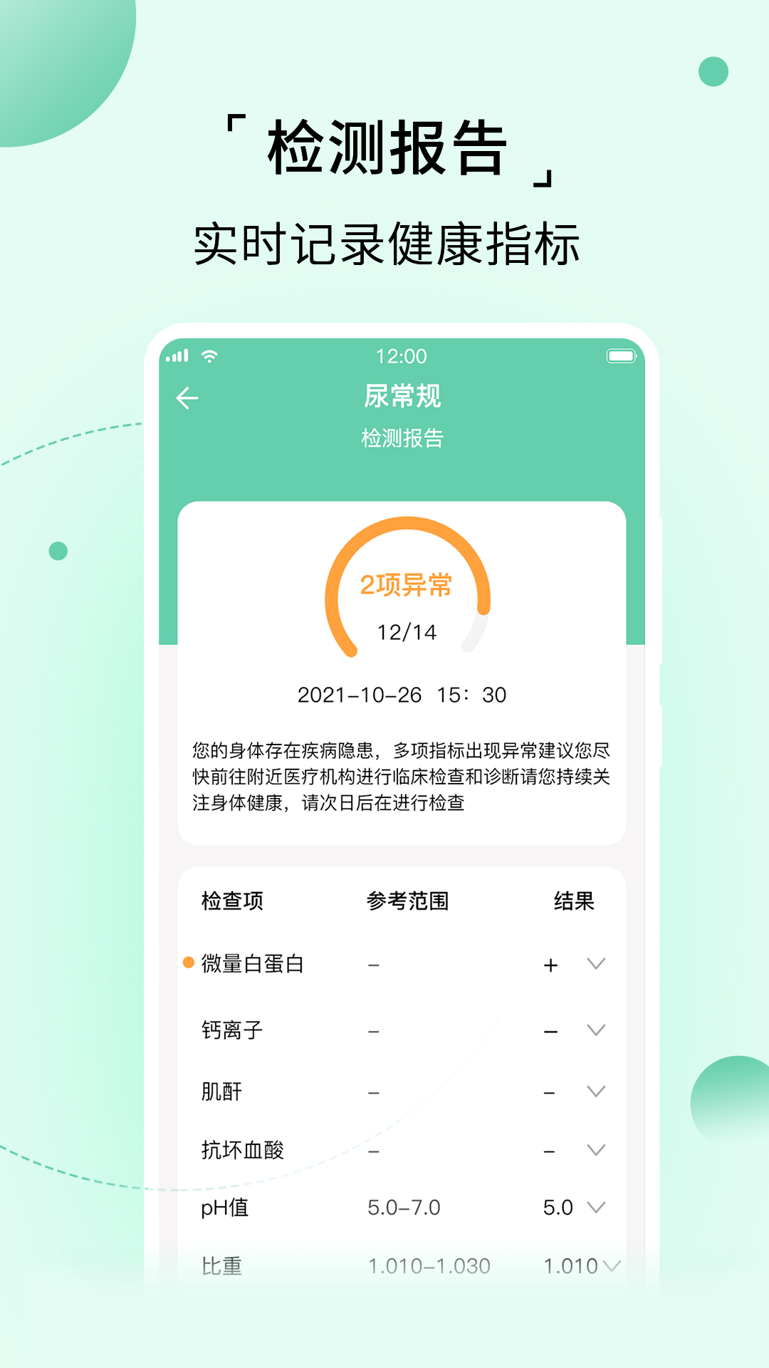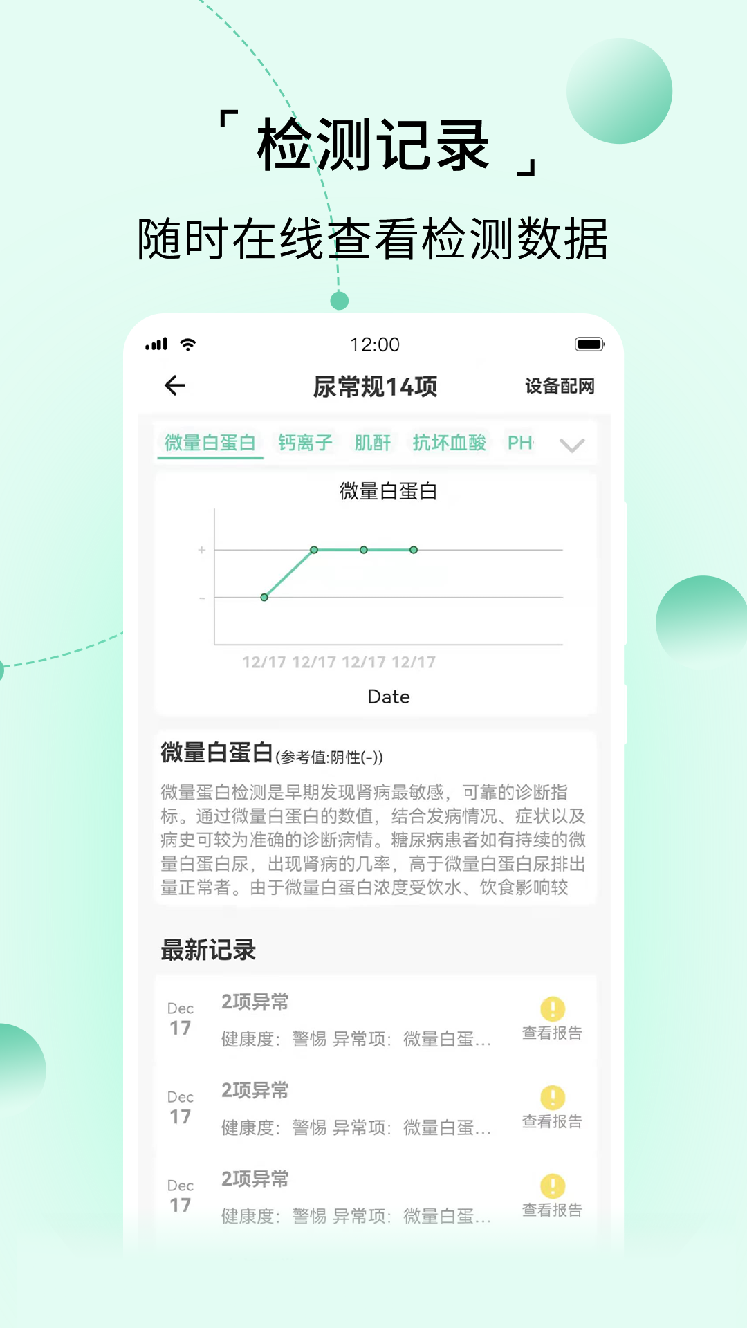 检测记录:尿液分析仪上传检测结果,并提供趋势解读,有助于您更好地掌握自身健康状况。