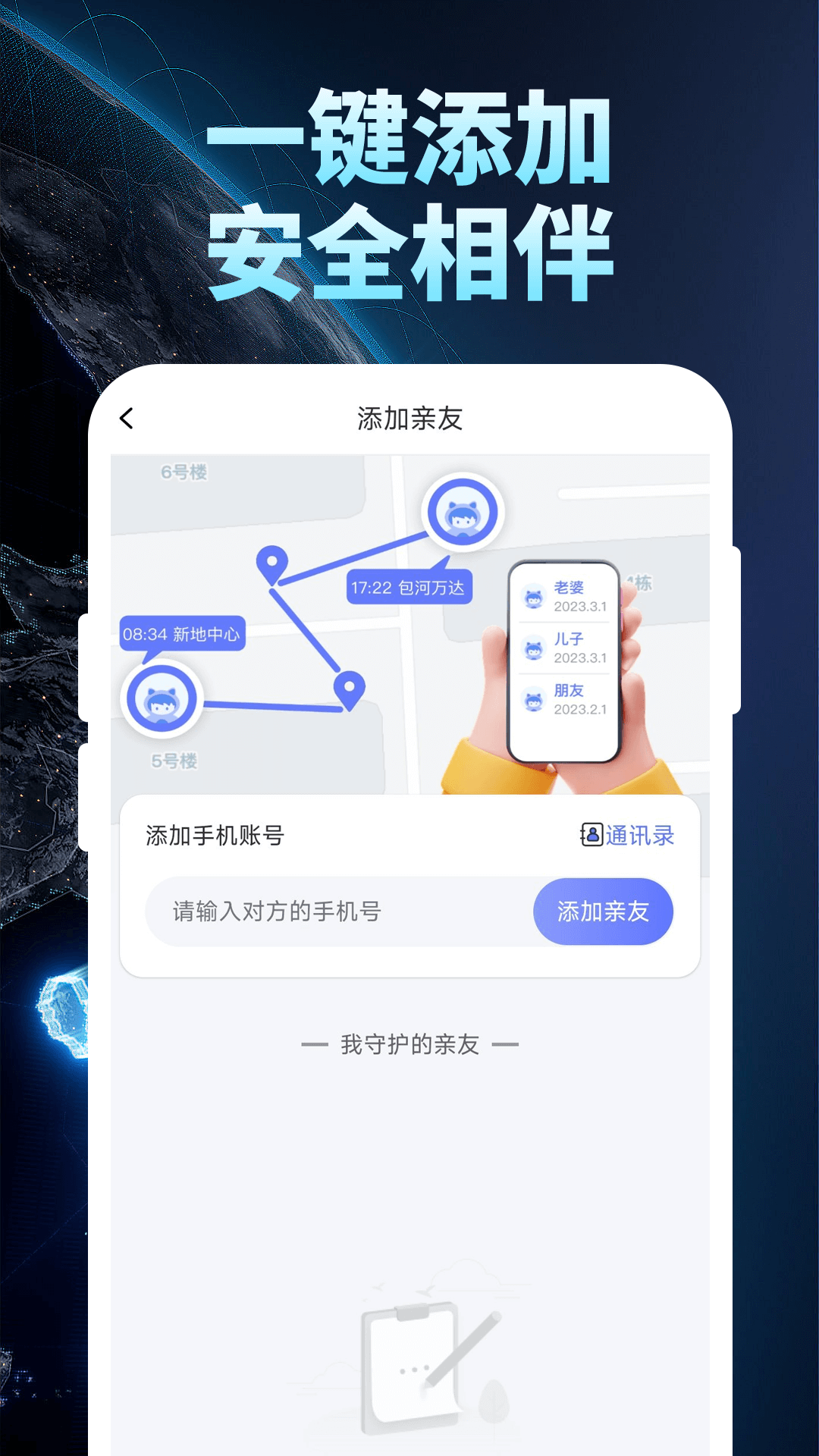 2.实时追踪:实时更新位置信息,让关心的人始终在视线之内。