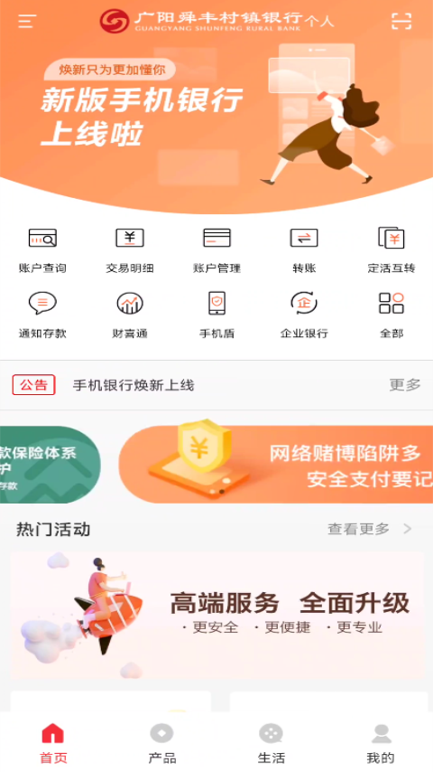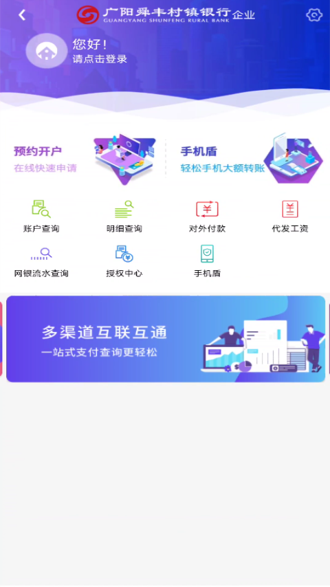 广阳舜丰村镇银行手机银行APP 强大的核心功能,简单的操作界面,给您带来无处不在的便捷,更重要的是转账汇款均无手续费!!终归成为您值得信赖的结算渠道!