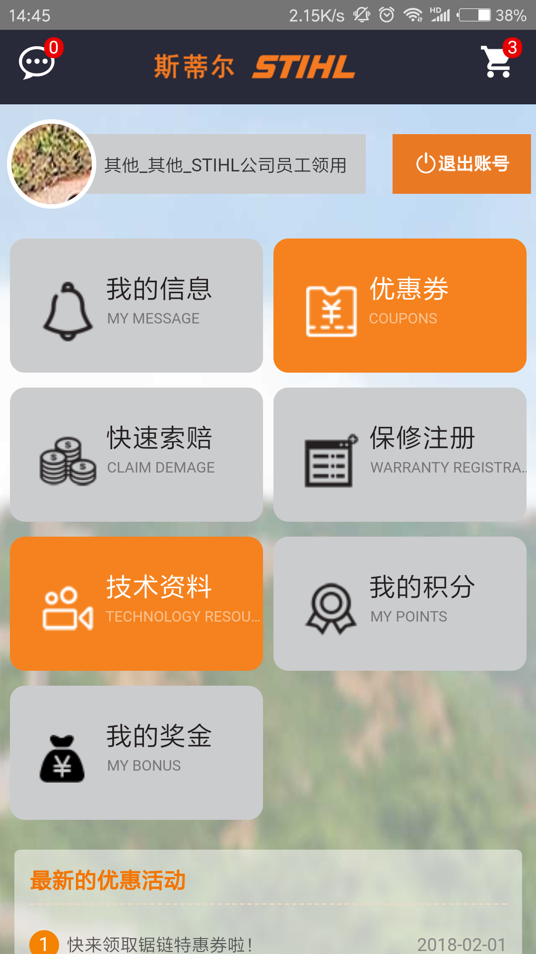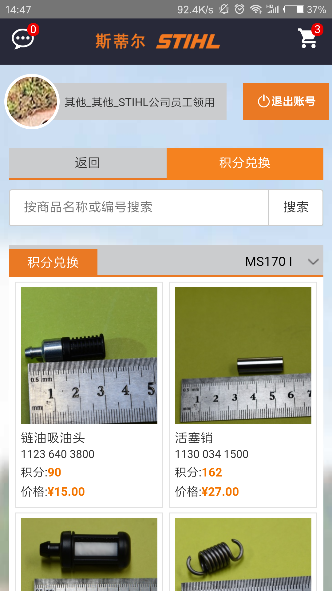 我的积分:显示保修注册奖励的积分,并可以在这里兑换公司的零配件。
