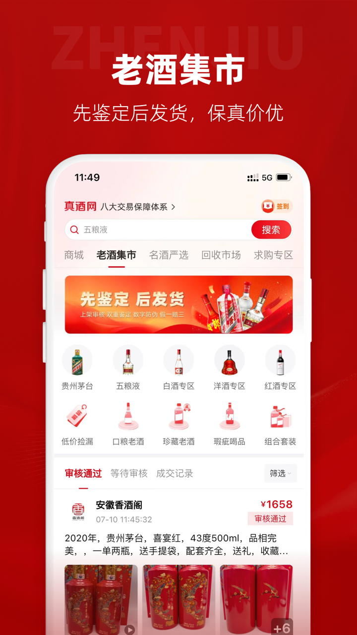 真酒网APP是一个集多种功能于一体的综合性名酒鉴定交易平台。