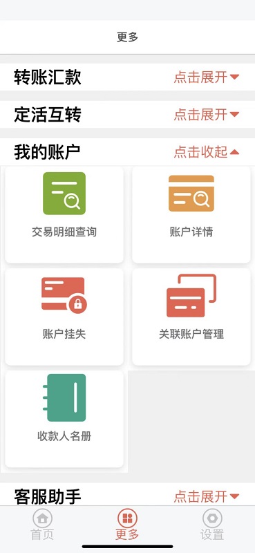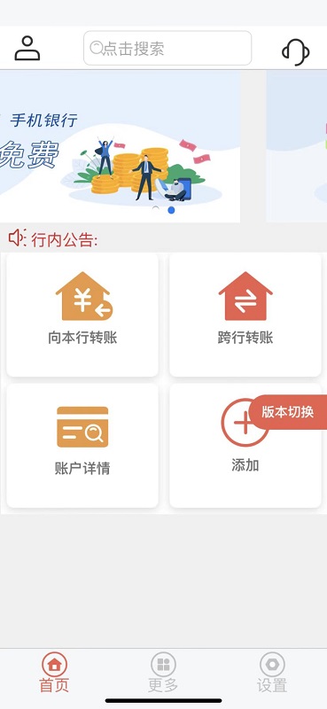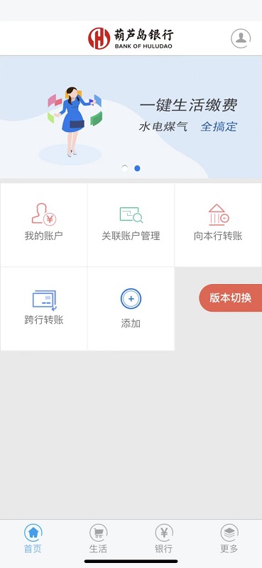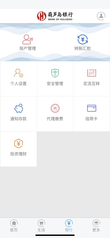 葫芦岛银行手机银行主功能:账户信息查询、交易明细查询、账户挂失、行内转账、跨行转账、网银互联转账、定活互转、通知存款、利易得存款、定惠存存款和理财产品等。
