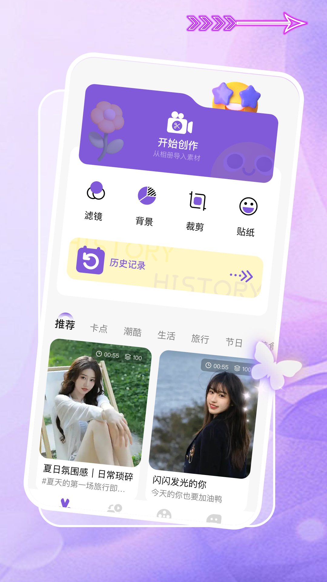 “即创”还有内置的高清相机拍摄功能,生活中的每一个精彩瞬间都不会被错过。再加上专业级别的视频剪辑工具,不管是裁剪拼接视频片段,还是给视频添加滤镜特效,亦或是调整视频的速度节奏,操作起来都非常简单,让您的创意能够无限拓展。