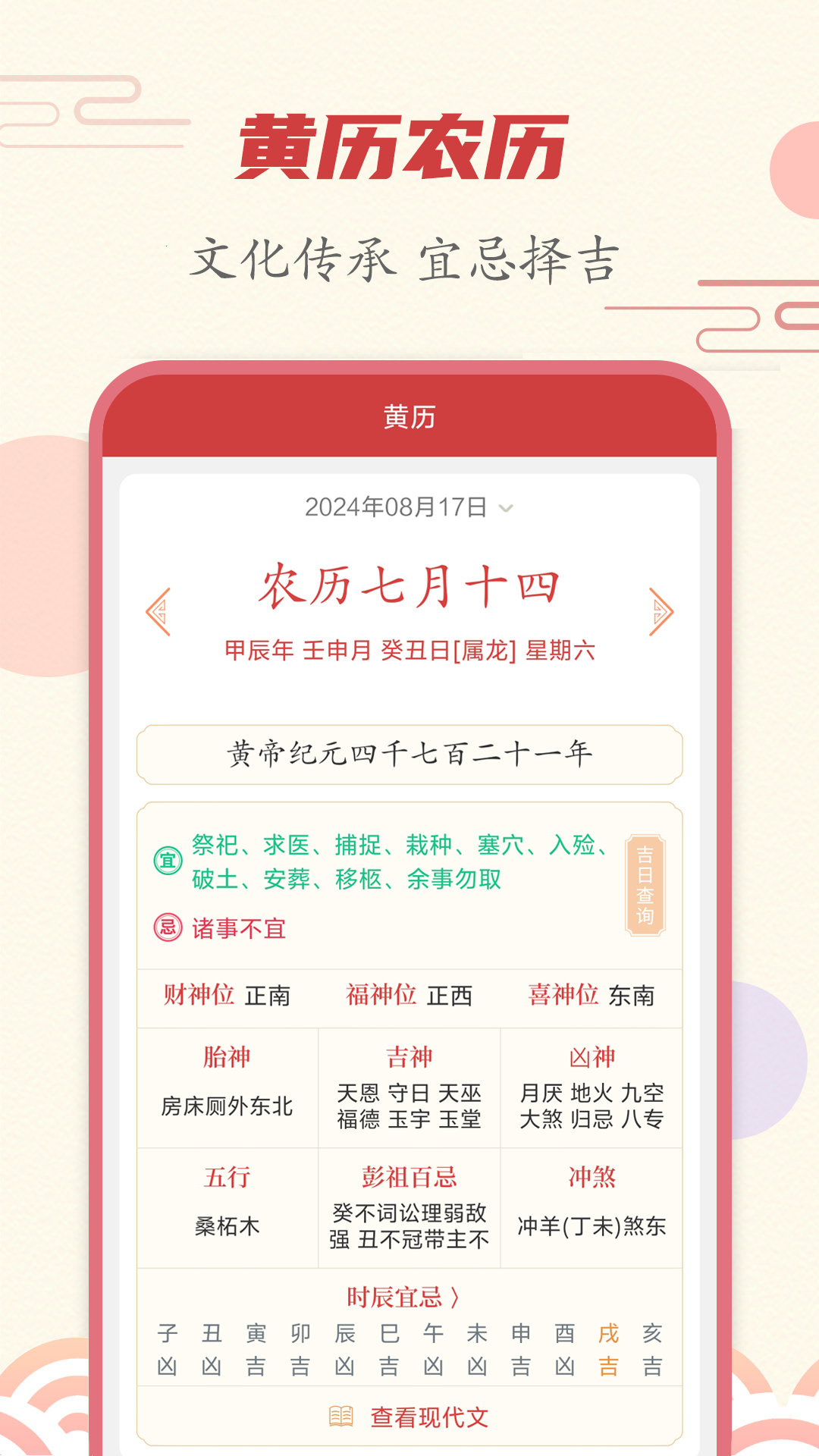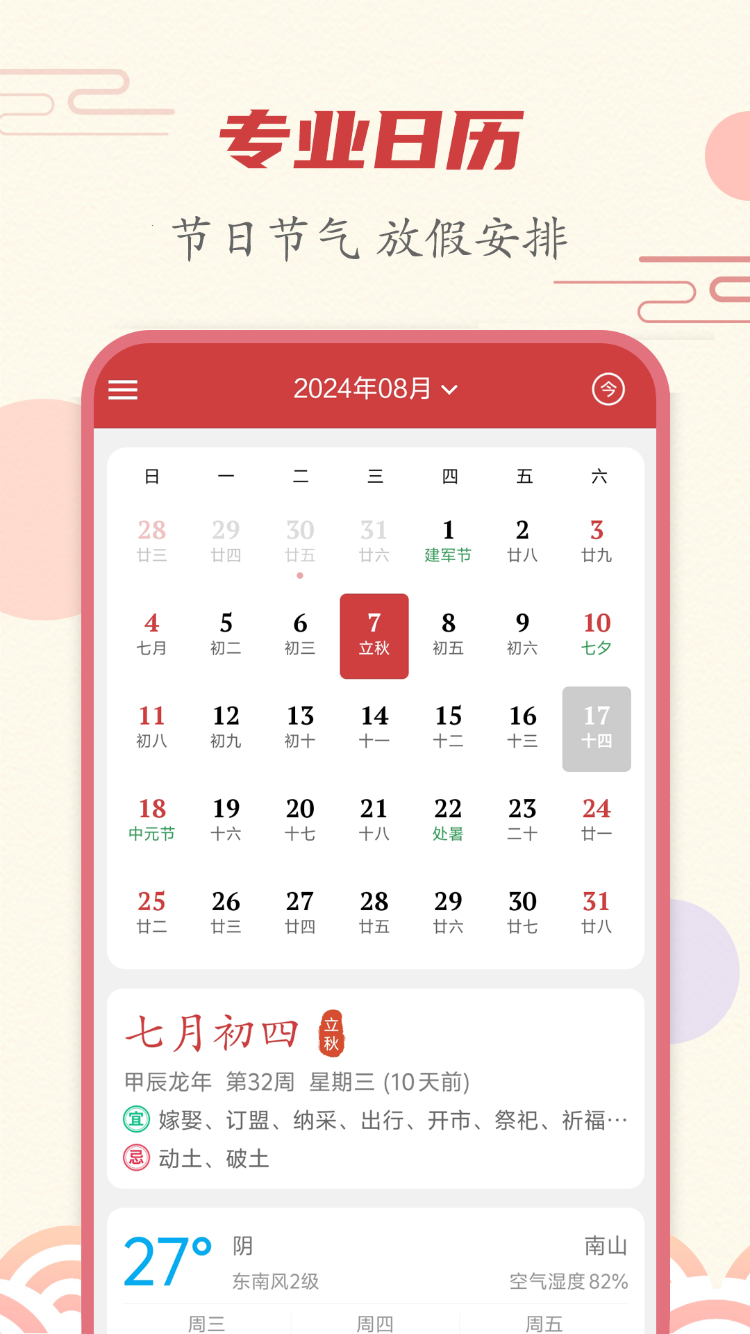 1. 日历:包含黄历、天气、节日节气、吉日查询、汽车限行以及三伏天等信息。