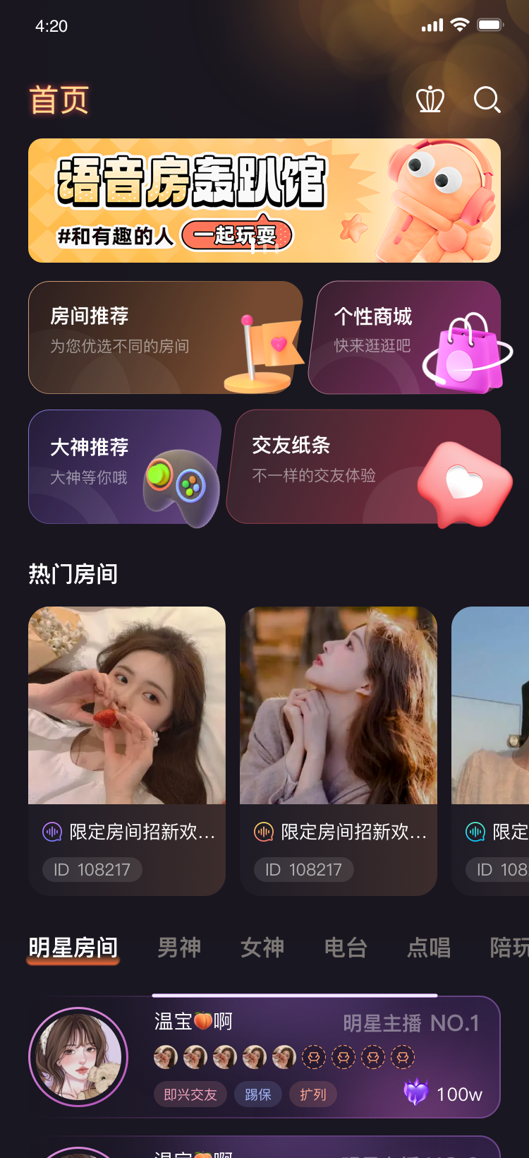 龙龙语音,这是一款别具一格的语音社交平台,它将为您开启一段前所未有的交流新旅程!在这个平台之上,声音化作沟通的桥梁,能够让您即时与来自五湖四海的有趣灵魂建立连接。