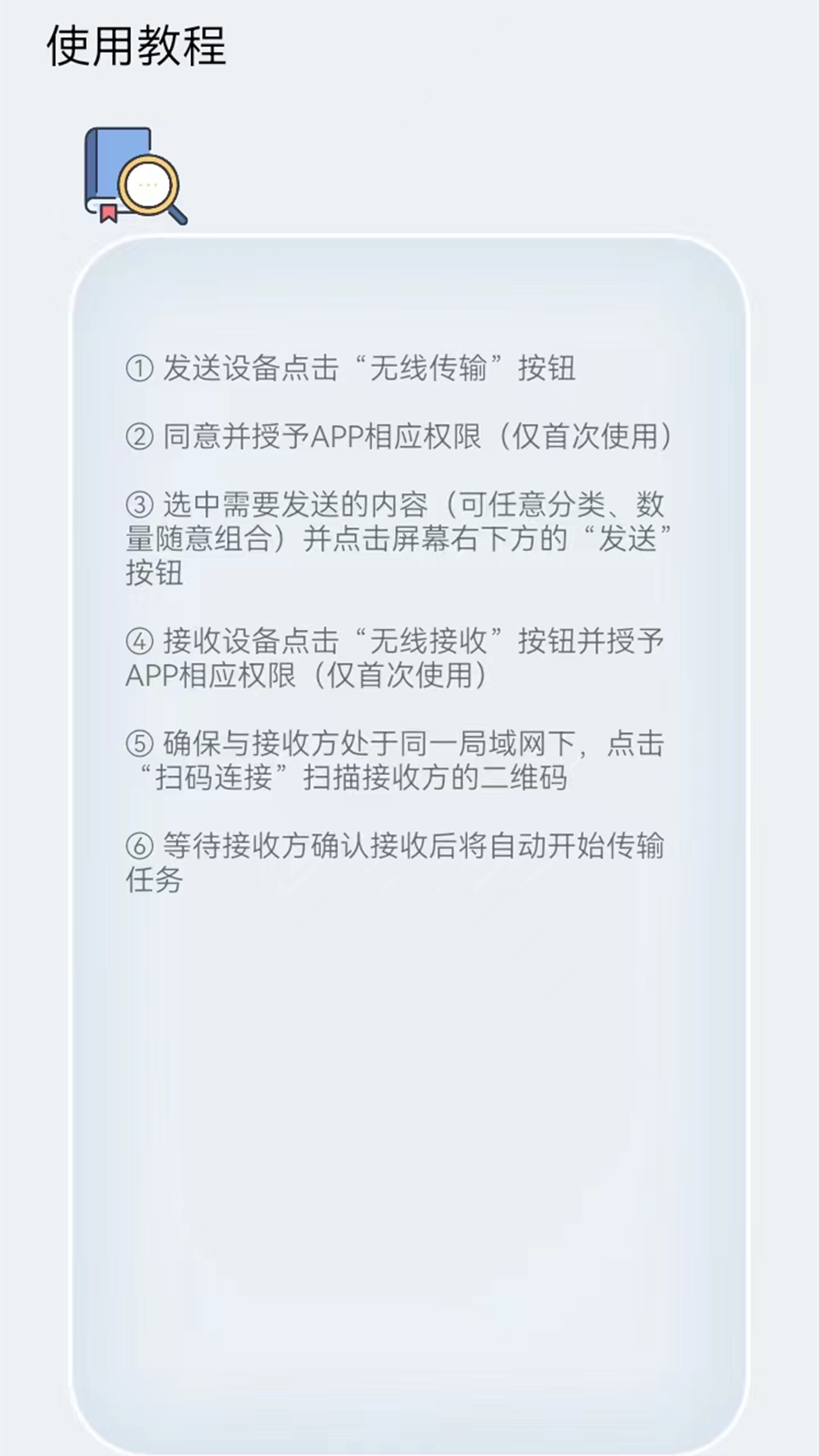 4. 传输过程稳定可靠,借助WIFI连接来传输文件,无需数据线就能实现一键换机。