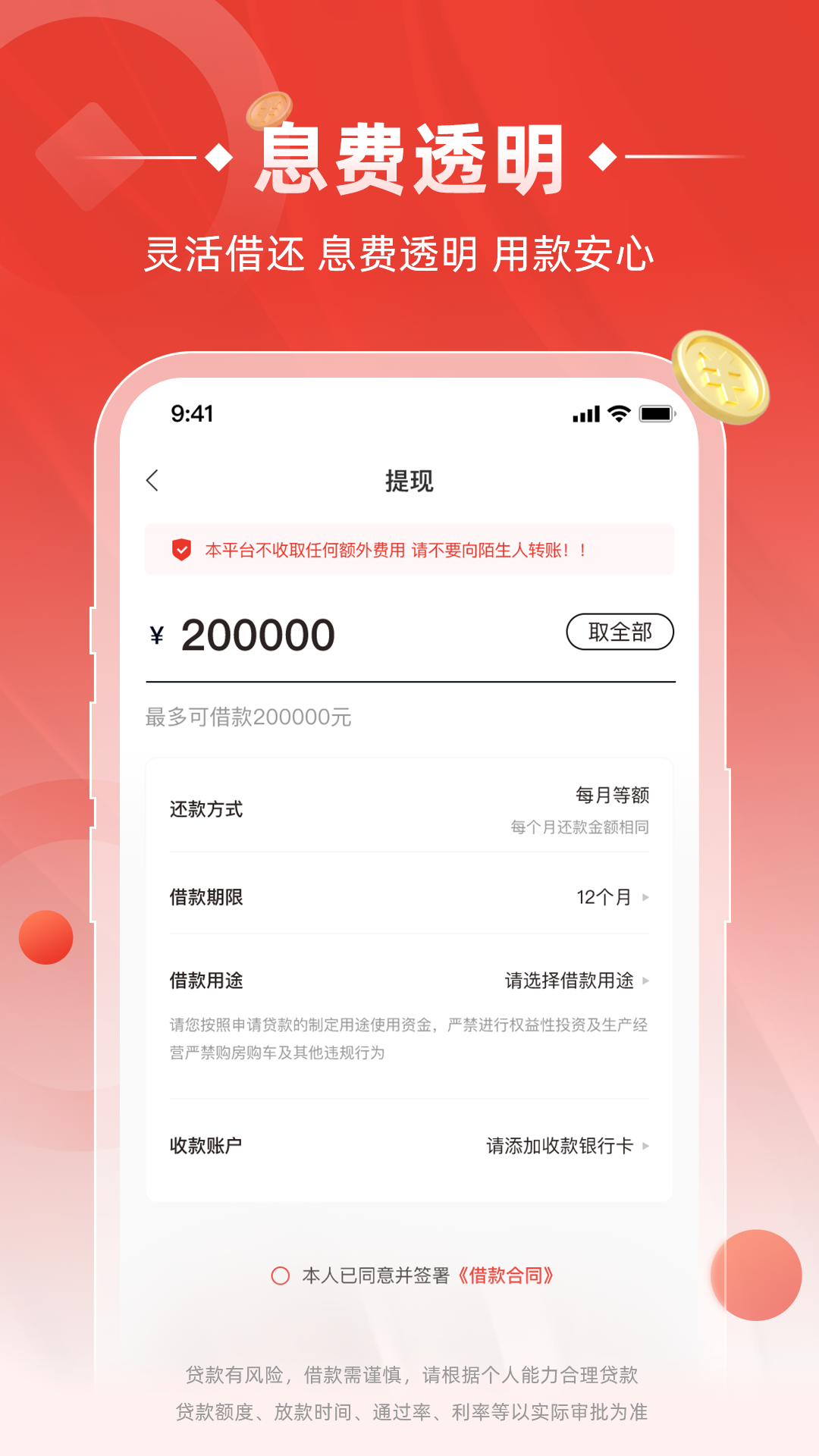 无需抵押与担保,仅凭身份证就能申请借款。