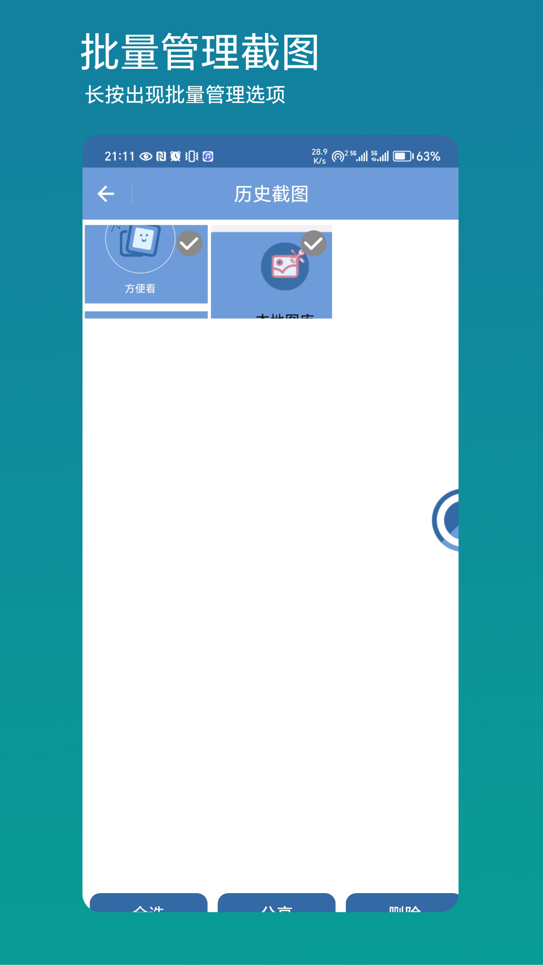方便看是一款超好用的截图固定工具。它的截图固定功能很强大,能够截取任意大小的图片,并且让这些图片悬浮显示在手机屏幕上。用户点击截图时,可迅速对其进行编辑和分享,这极大地提高了使用效率。此外,无论是本地图库的选择,还是截图图库的选择编辑,都能够满足不同用户的多样化需求。
