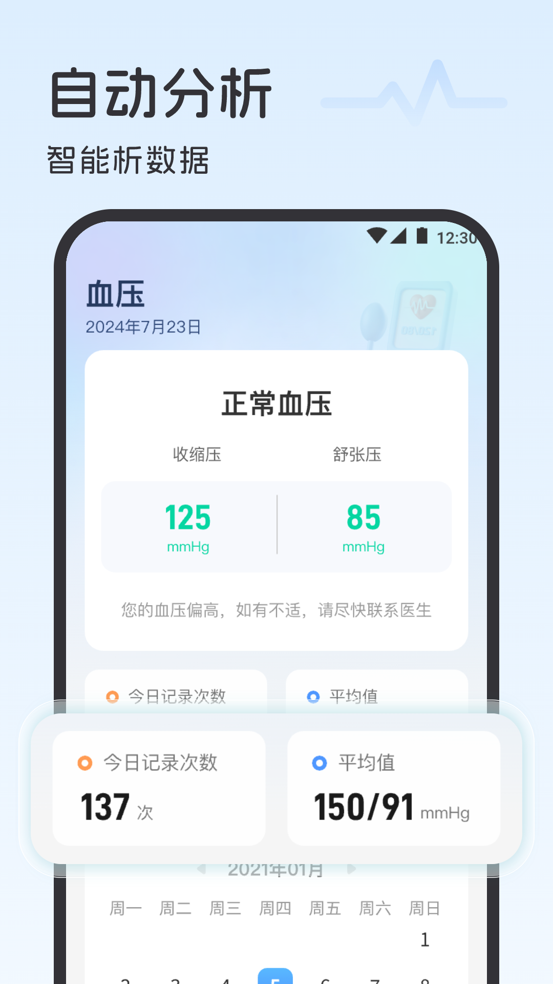 4. 每日平均值:它能够自动计算并呈现您每日的血压血糖平均值,使您对自己的健康状况有更为清晰明确的认识。借助对平均值变化的监控,您可以及时调整自己的生活习惯,从而维持健康稳定的状态。