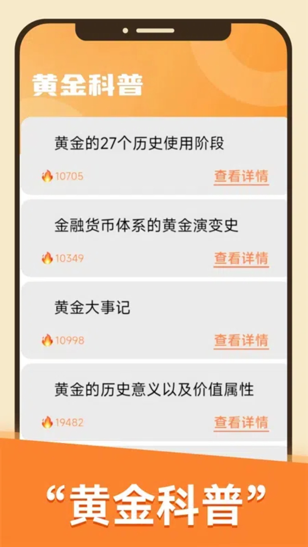 点金多多是一款普及黄金知识的软件。用户可以了解黄金的价值以及前世今生。还提供了丰富的黄金保养小技巧,帮助用户更好地保管自己的黄金饰品,延长其使用寿命。总之,快来下载点金多多,来体验集学习黄金知识、保养技巧于一体的黄金工具小助手噢!