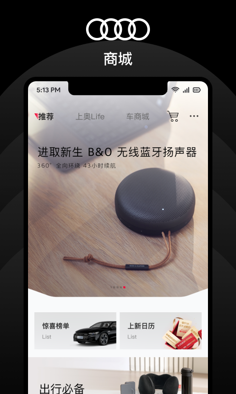 商城:这里有更多奥迪精品、限定商品以及精彩附件可供轻松选购,还有大量惊喜优惠等待用户去发现;