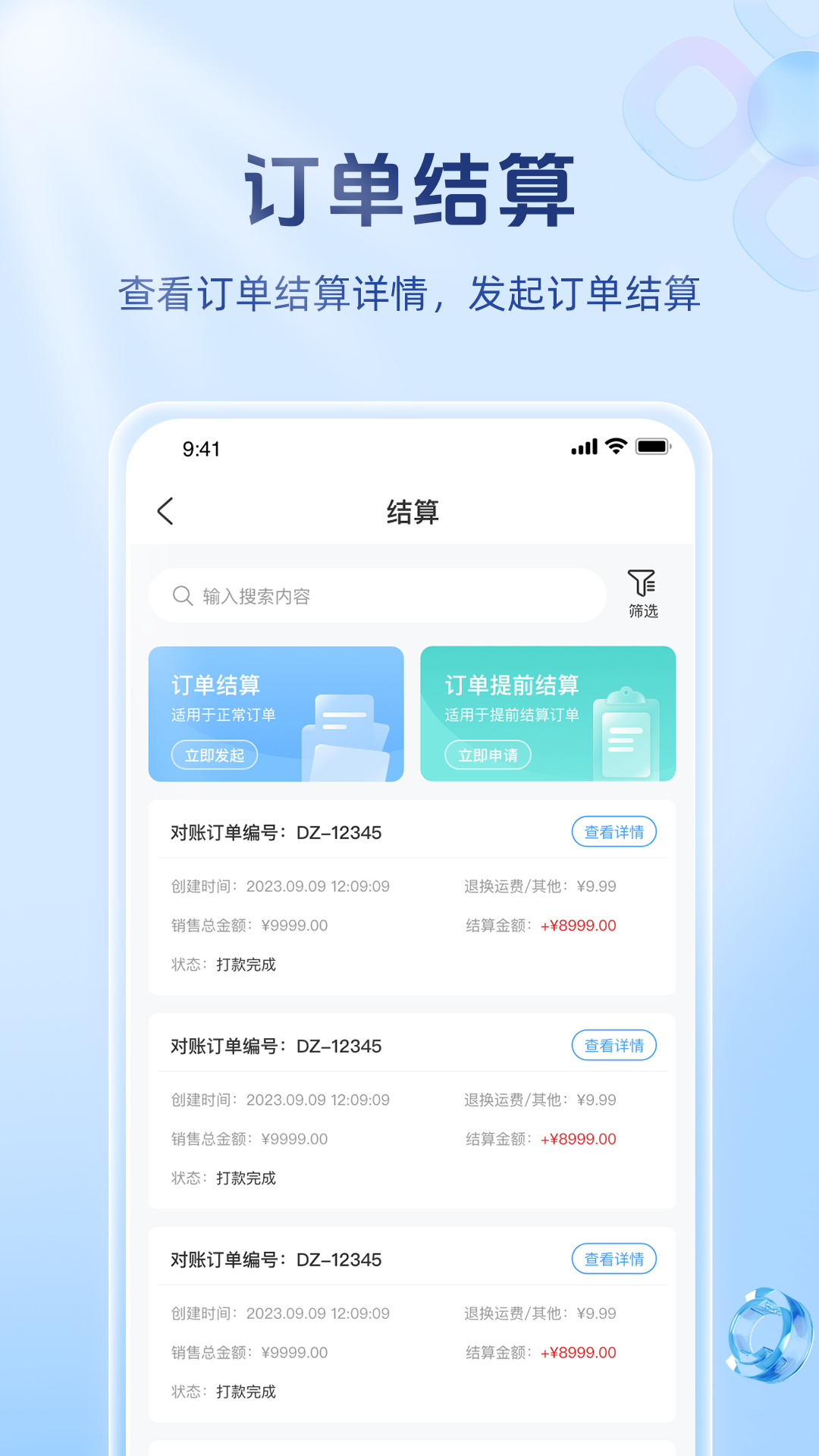用户订单可以线上提供成产品需求,由专业采购客服在线匹配相应产品清单。采购阶段并且平台可以采购阶段提供资金垫付和订单方案优化服务,同时我们还有海量SKU可以给用户提供选择。平台对每笔订单提供透明账单明细和提前结算等服务。