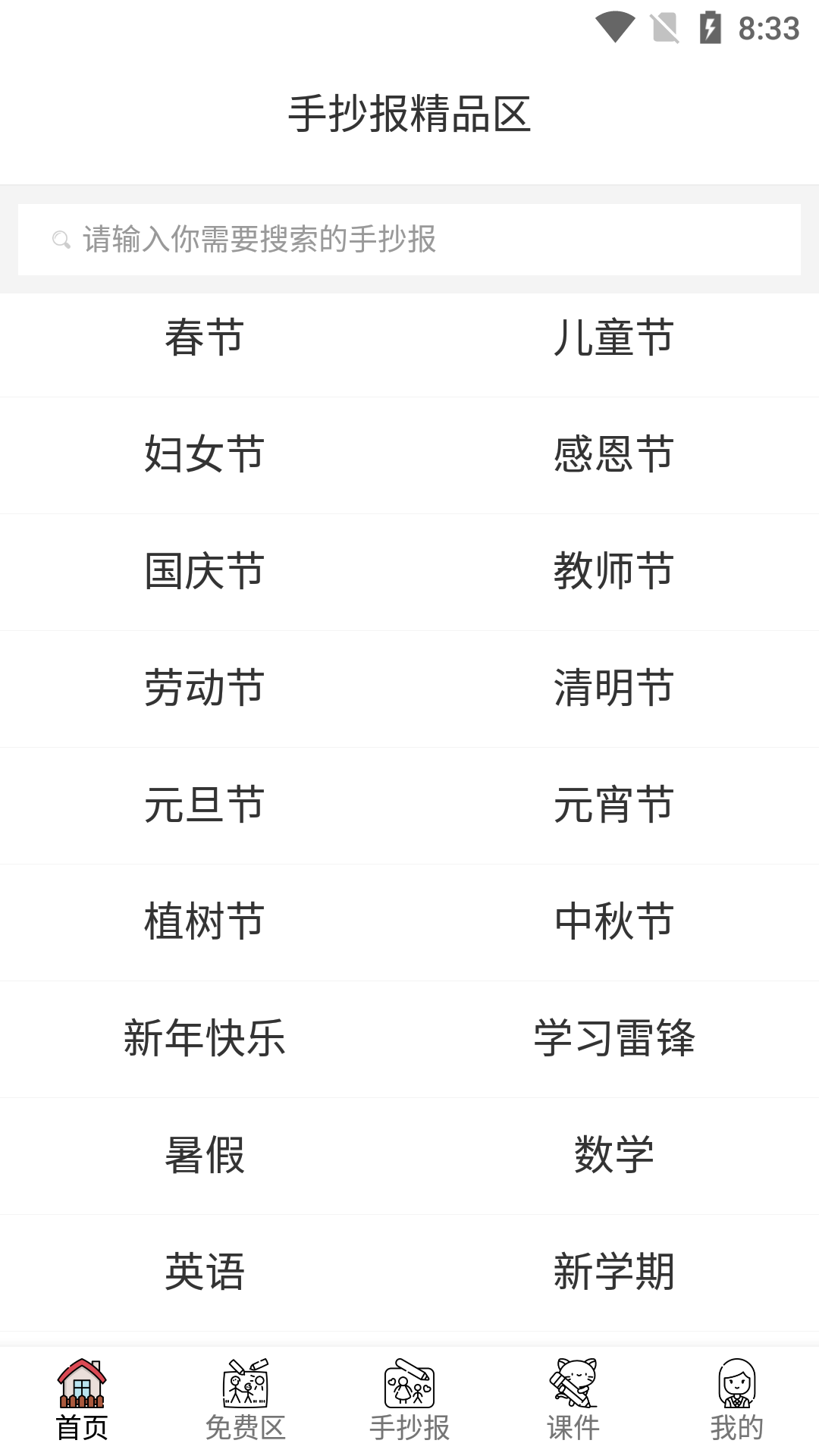 新增了手抄报免费区供大家免费下载每天可以下载2次。