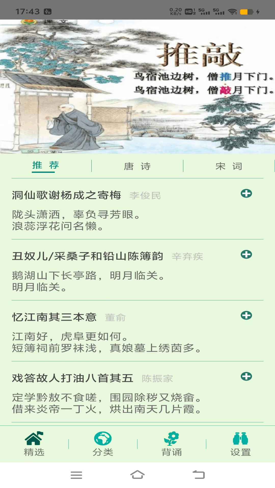 帮助用户认识学习中华古代唐诗宋词