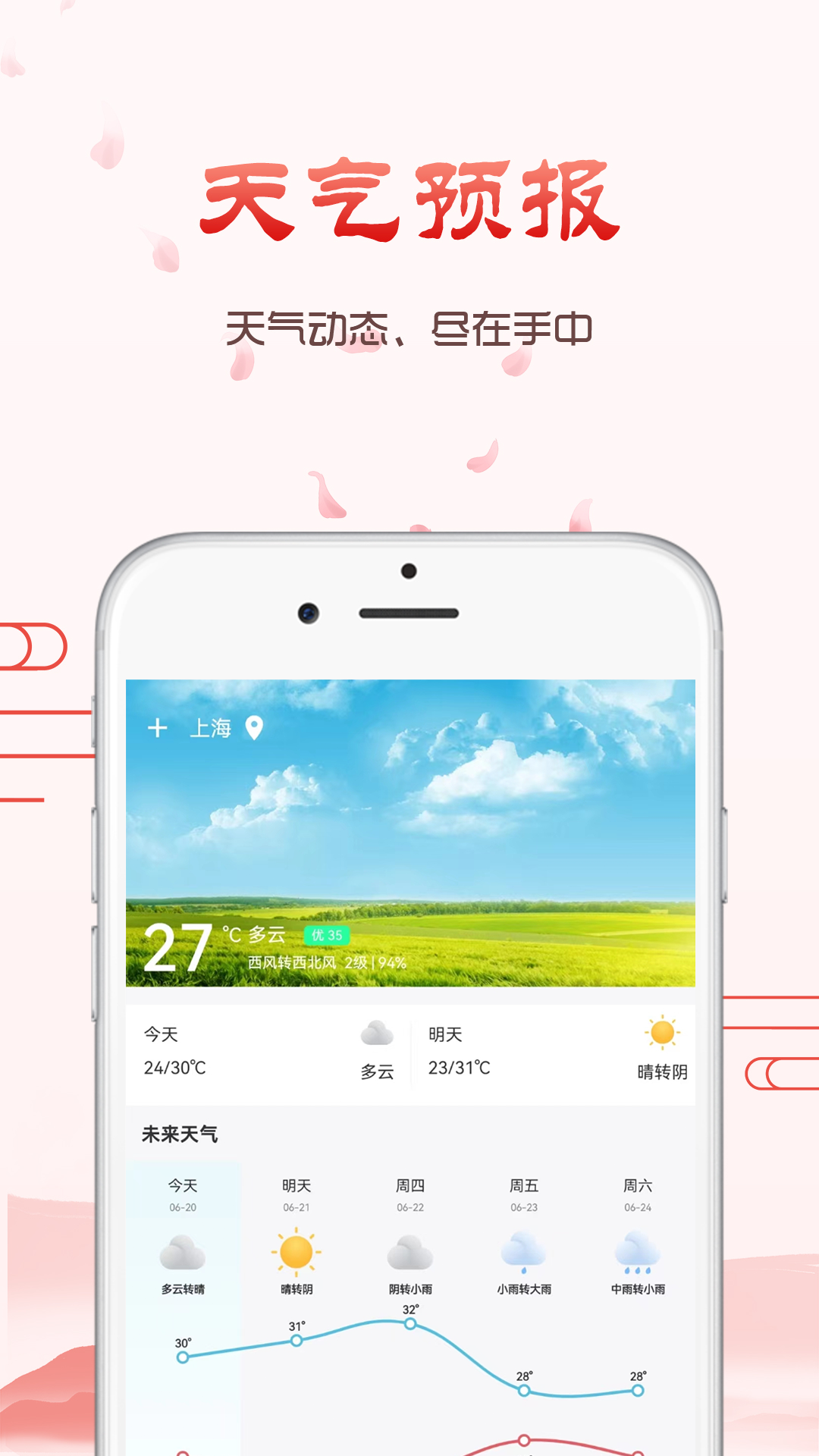 提供日历、天气、记事提醒、二十四节气、生肖查询、吉日查询等实用功能;