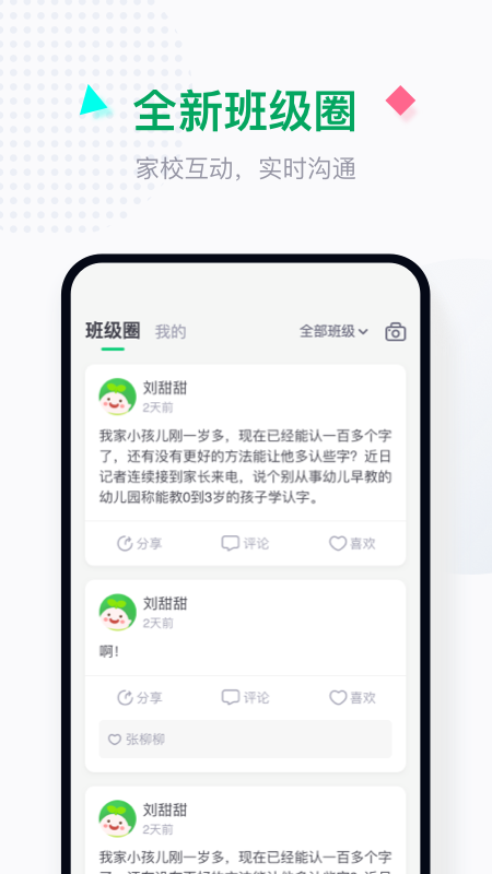 - 通讯录:查看校园和班级通讯录,方便快速沟通联系。