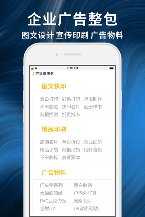 ▷ 企业可专享一对一服务,获得更高效、便捷、专业精美的广告印刷和广告设计安装服务。