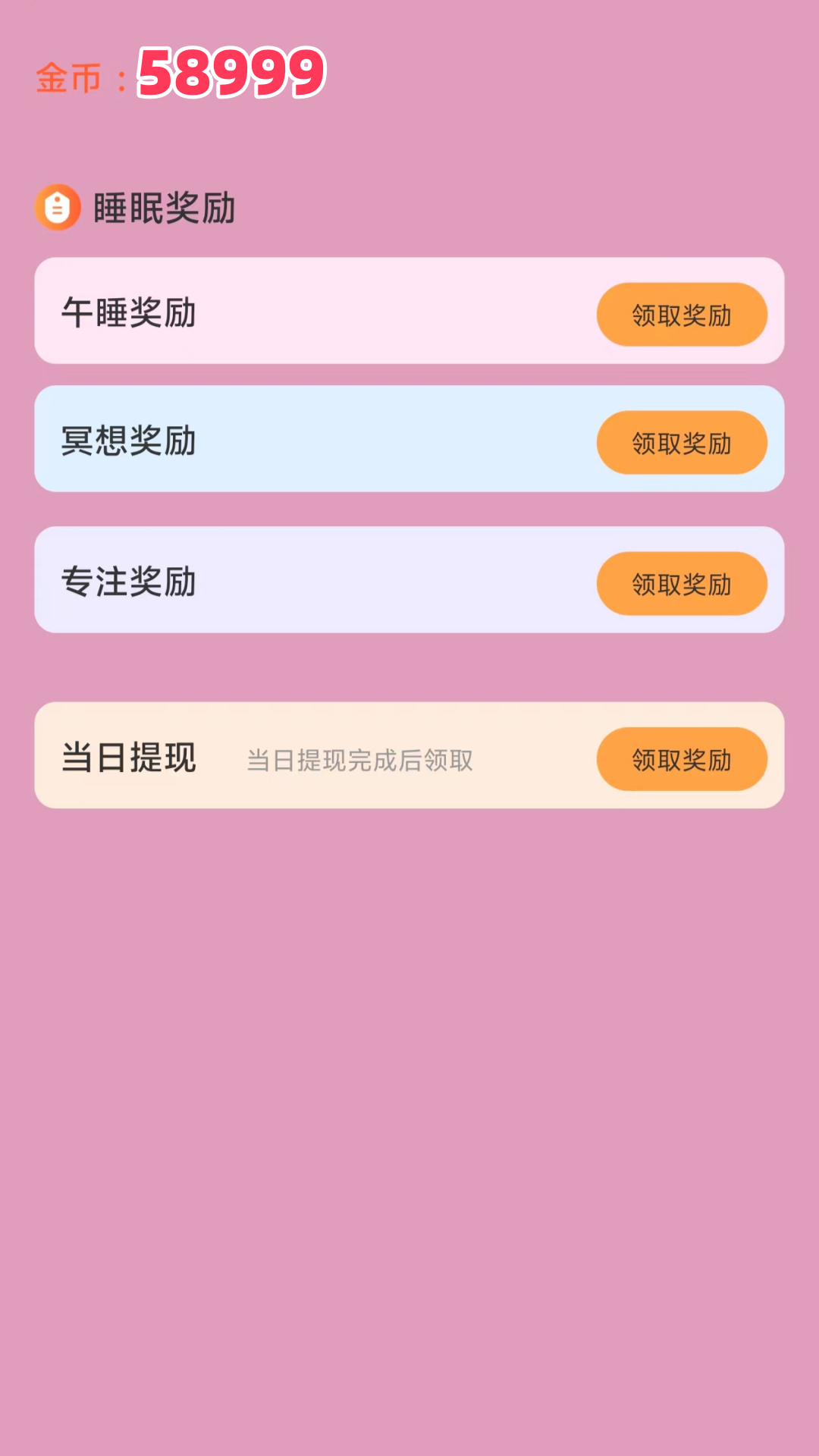 睡觉赚钱快,这是一款超棒的应用哦!它能够提醒大家每天在合适的时段入睡和起床呢。当你在健康睡眠的过程中,还可以顺便赚取零花钱哦。操作很简单,只要在睡前和起床的时候各打卡一次,就能轻松得到现金红包啦。而且,这里还有提升专注力的功能,每天都能进行冥想练习。在赚钱的同时,还能够提高身体素质呢,是不是很诱人呀?