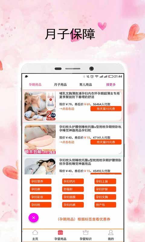 - 孕妈用品:了解孕期用品,待产包、孕妇裤、防辐射、文胸、内裤和孕期护肤用品等