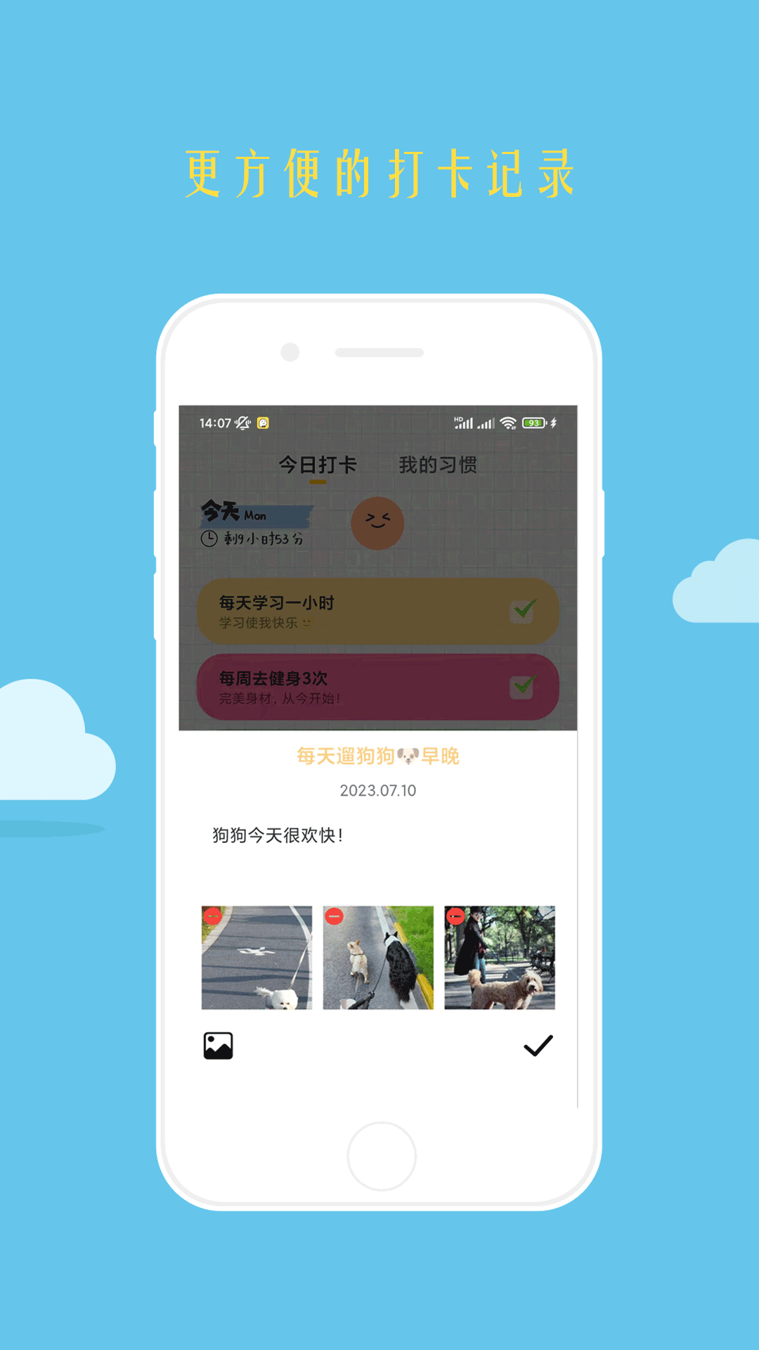 - 能够创建习惯,并且依据日期进行打卡操作,同时可以记录打卡日记。