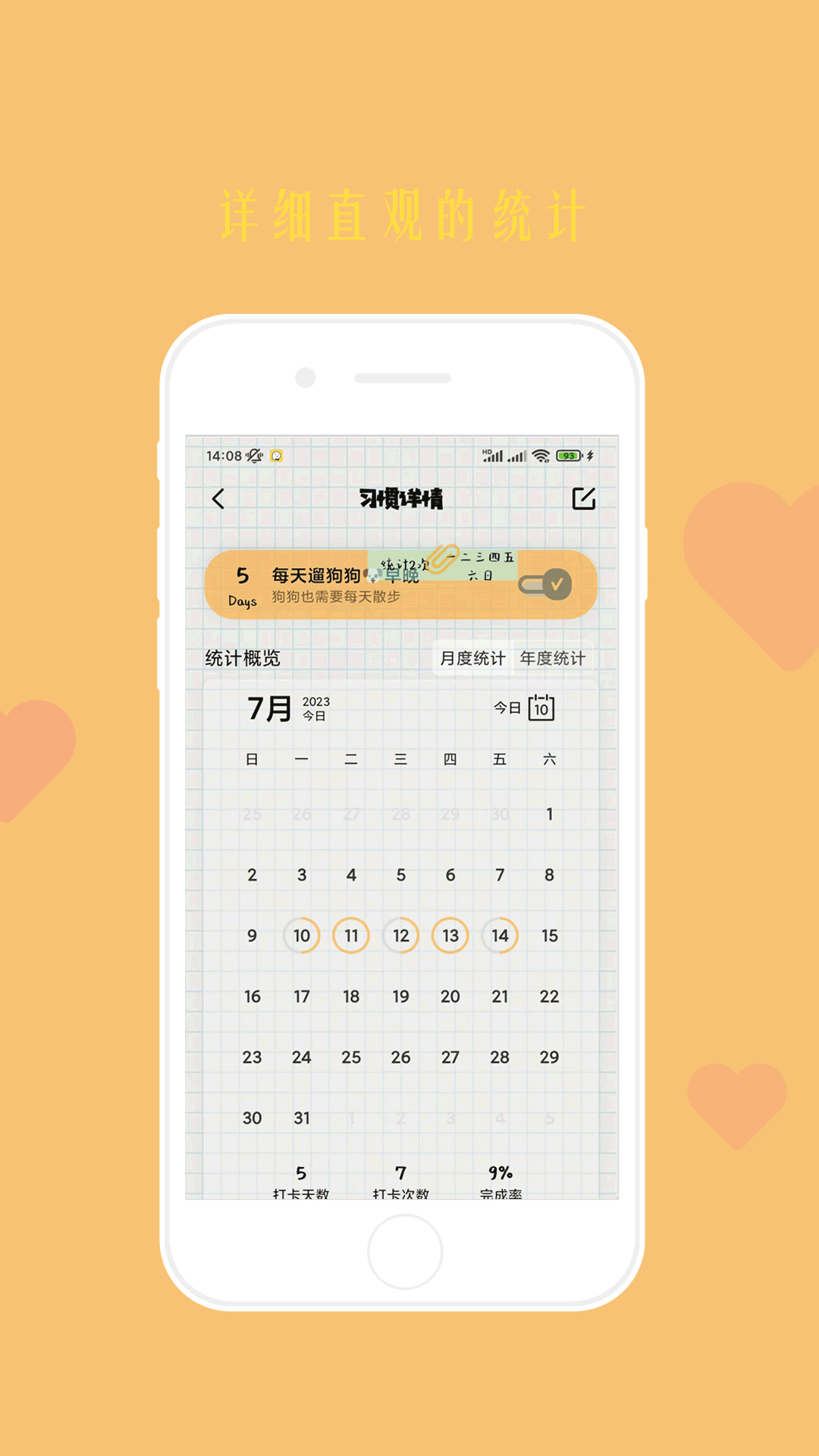 - 支持暂停习惯,还可以查看习惯打卡的统计数据以及相关日记。