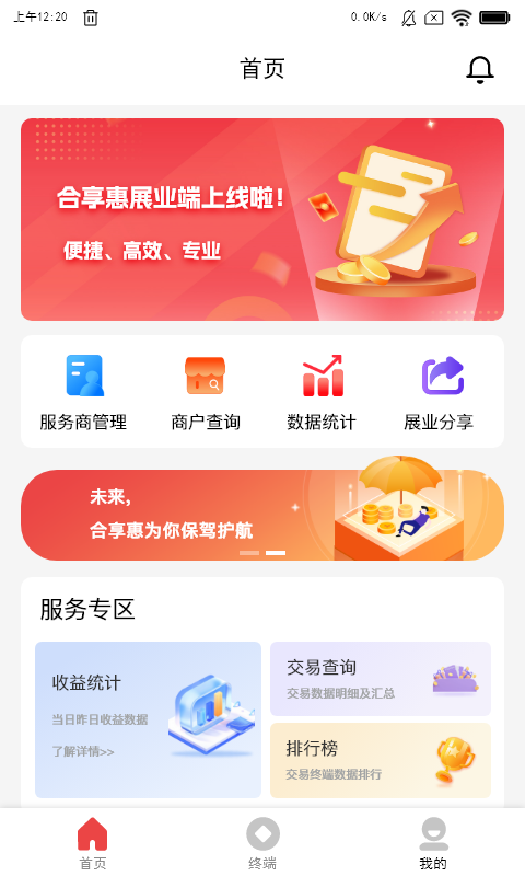合享惠展业端是一款专门面向服务商精心打造的高效移动展业拓客工具。它能够为服务商提供诸多服务,其中包括商户管理、终端管理、交易数据查询以及交易统计等功能。