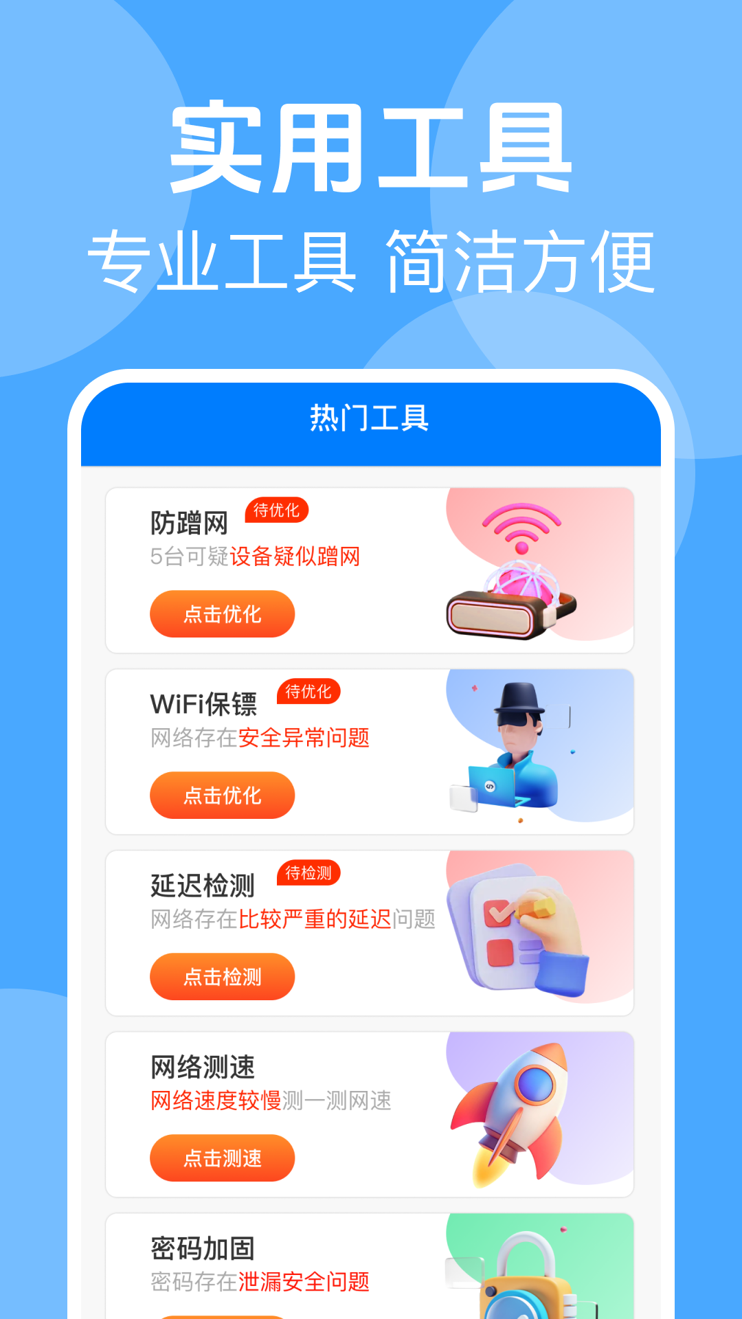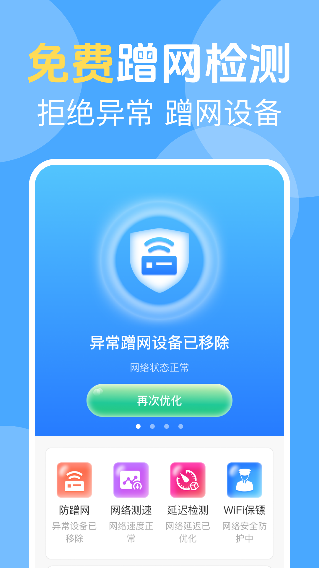 4、异常设备管理:智能识别并显示异常蹭网设备,一键移除,确保您的网络环境不受干扰。同时,网络状态异常时自动提醒,并提供优化建议,让您的网络始终保持良好状态。