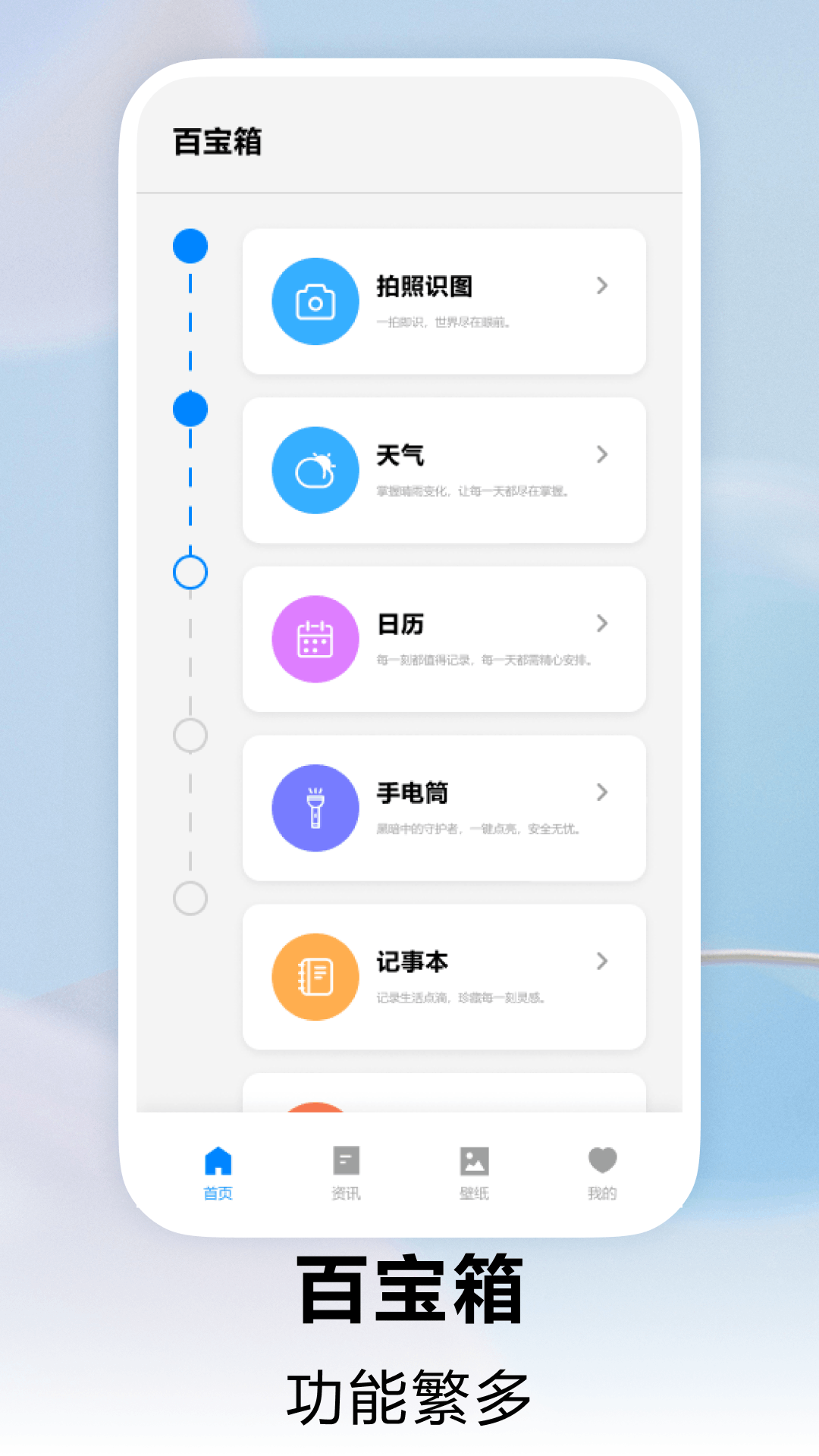 wallpaper壁纸引擎汇聚了各种各样的高清壁纸,有了它,你的手机每天都能换上不一样的壁纸。而且它可不仅仅是壁纸软件哦,还提供各地的旅游资讯,无论何时何地,只要你想开启一场说走就走的旅行,这些资讯都能为你助力。此外,wallpaper壁纸引擎还包含诸多实用功能,像拍照识图、查看天气、日历查询、手电筒照明、记事本记录以及倒计时设定等等。
