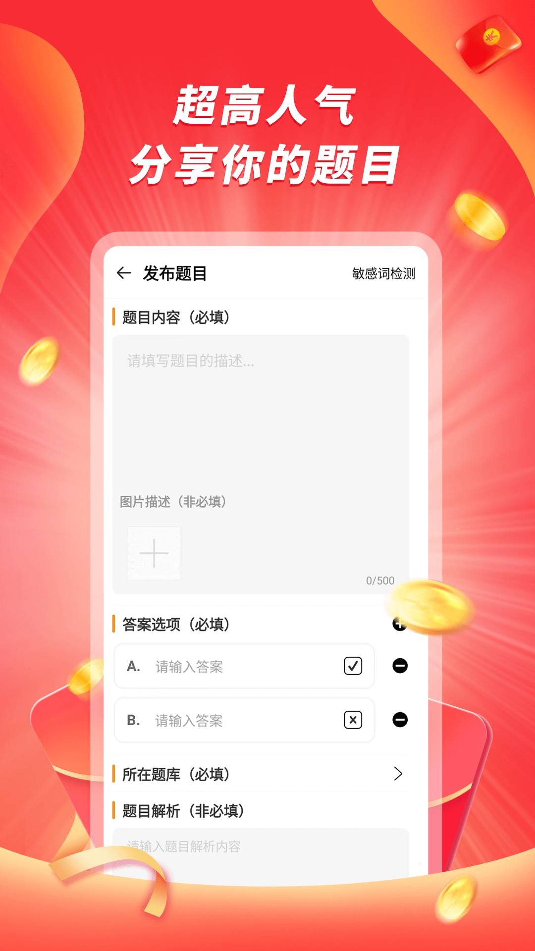 你还可以发布各类有趣的知识,像热门影视、动漫、音乐等方面的问答题目。如果发布的题目质量较高,就会获得更高的推荐,从而给你带来更多的收益呢。还等什么呢?赶快喊上小伙伴们,一起到爱答来答题吧。