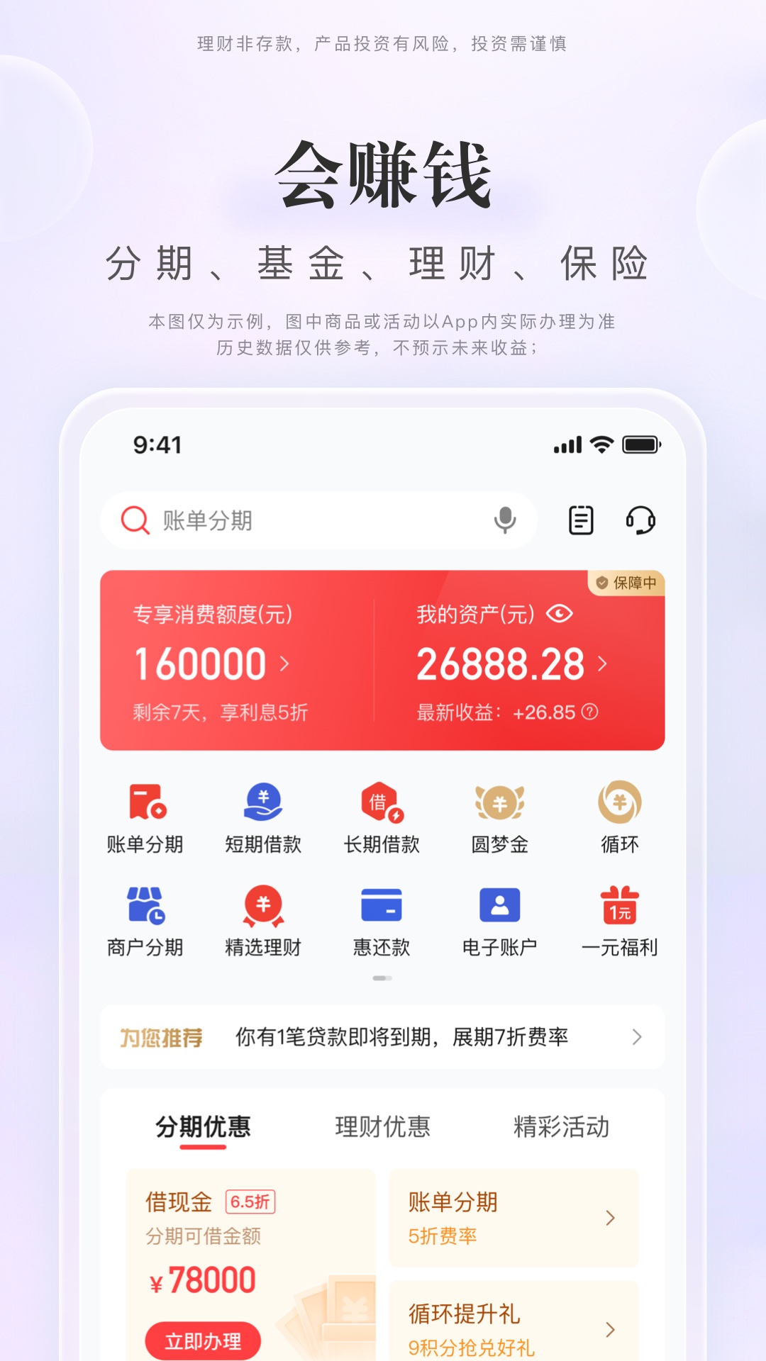 查账还款,调整额度,账单分期,一键办卡,用卡服务一手掌握。