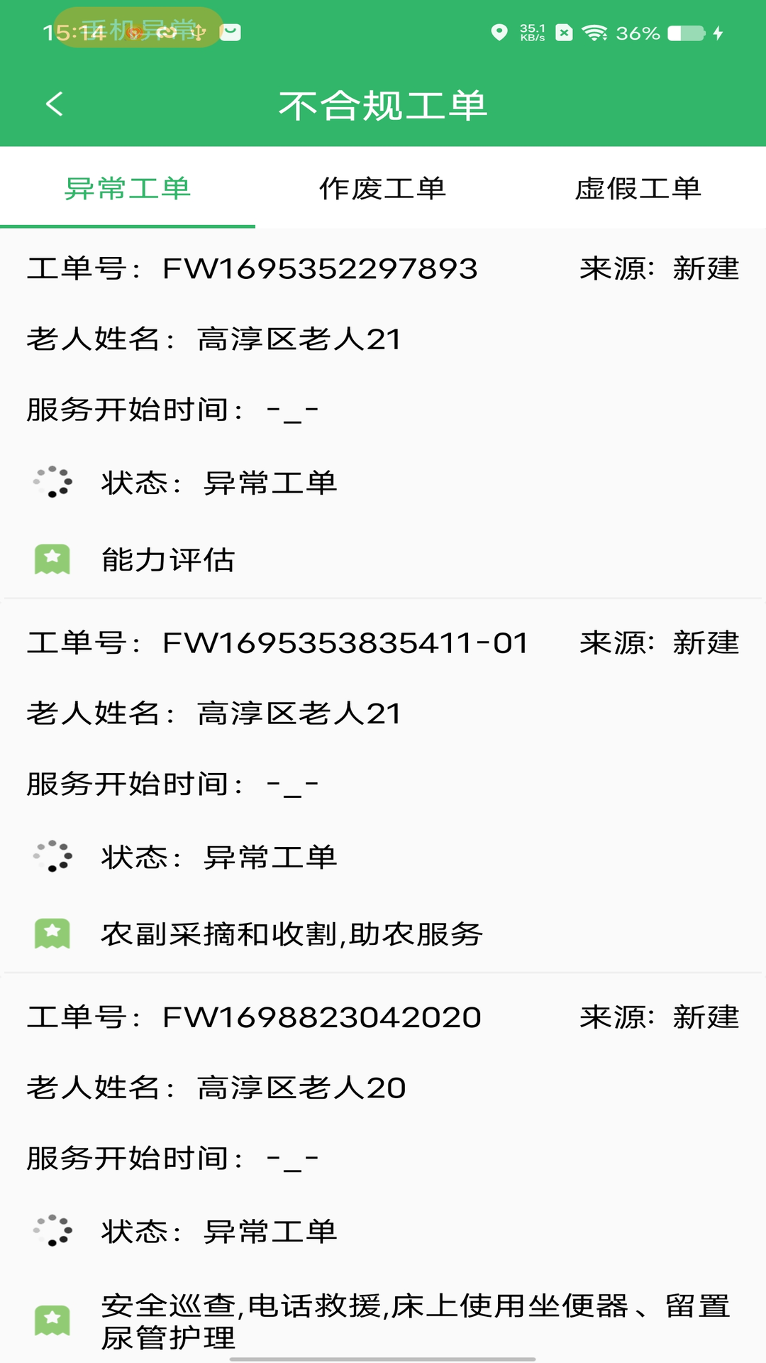 平台为护工提供由服务端分派的工单接单、服务过程记录、服务完成后结算的一整套居家老人工单服务流程。方便护工核实和记录服务情况。护工和老人也可面对面沟通,新建成工单,实现了移动端随时随地方便快捷的派单。